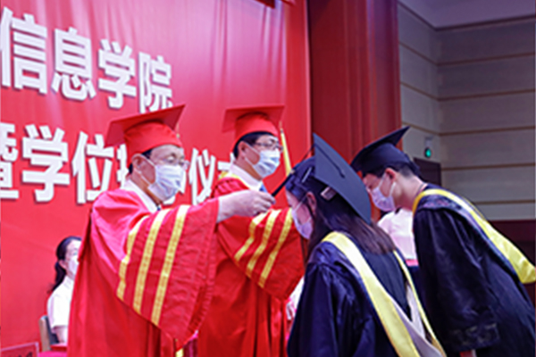 6月22日上午,长春工业大学人文信息学院2022届学生毕业典礼暨学位授予仪式在报告厅隆重举行。学校创建人、董事长张兆华,校长潘福林,党委书记王煊等学校领导班子成员出席典礼。毕业典礼由学校办公室主任张孝强主持。 51名毕业生代表现场参加毕业典礼,2553名毕业生及家人和学院教职工相聚云端,通过网络直播共同见证这一庄严时刻。 在庄严的国歌声中,毕业典礼暨学位授予仪式拉开序幕。典礼上,党委书记王煊宣布了2022届学生毕业和学位授予情况以及“优秀毕业生”的表彰决定。 典礼现场,董事长张兆华、校长潘福林向毕业生代表拨穗正冠授予学位,并颁发毕业证书、学位证书。学校领导为优秀毕业生代表颁奖。 信息工程学院张...