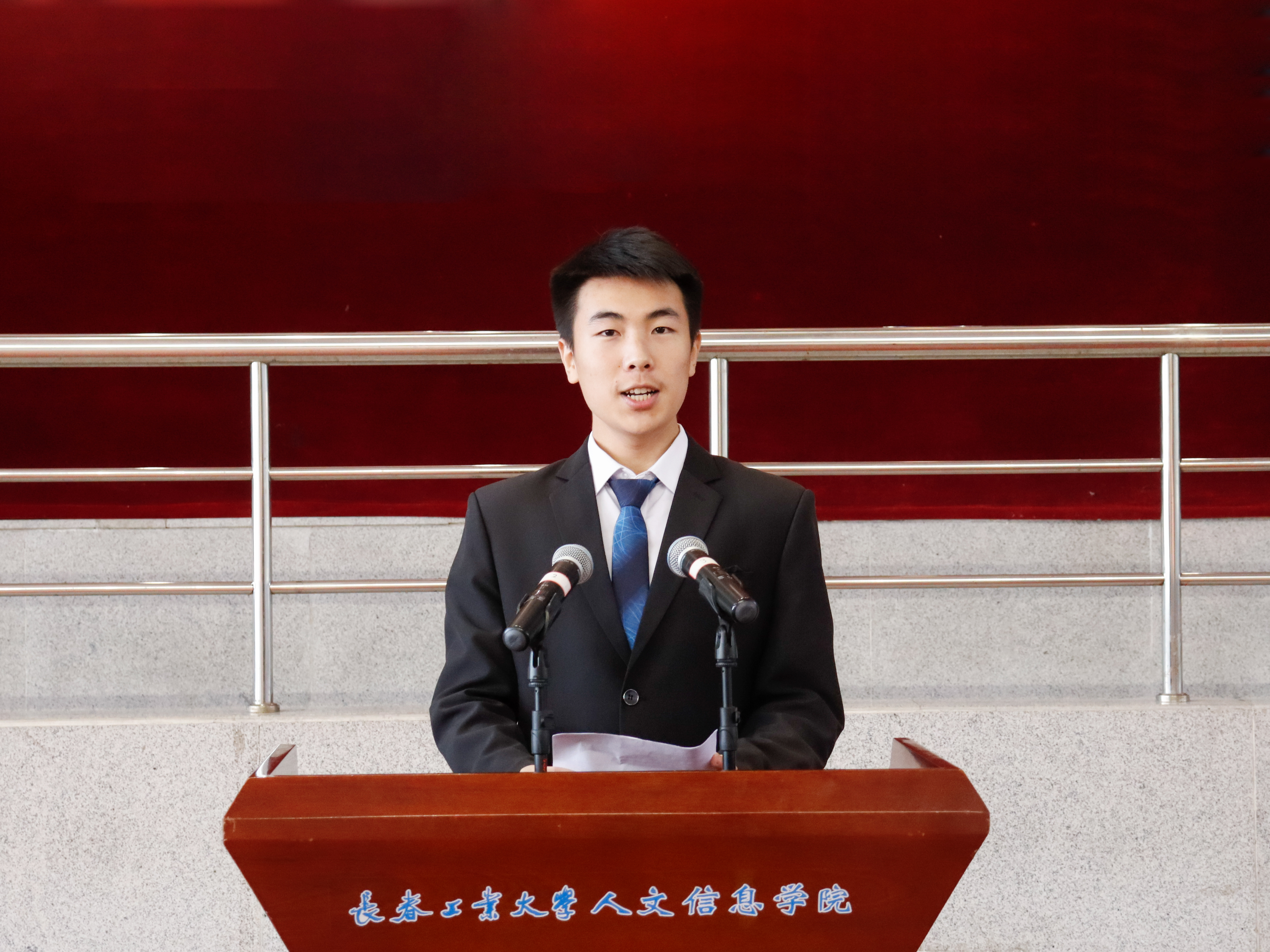 典礼在庄严的国歌声中拉开帷幕,教师代表、外国语学院院长唐艳玲,在校生代表、信息工程学院2019级学生孙然,新生代表、自动化学院2022级学生陶屿哲分别作了发言。
