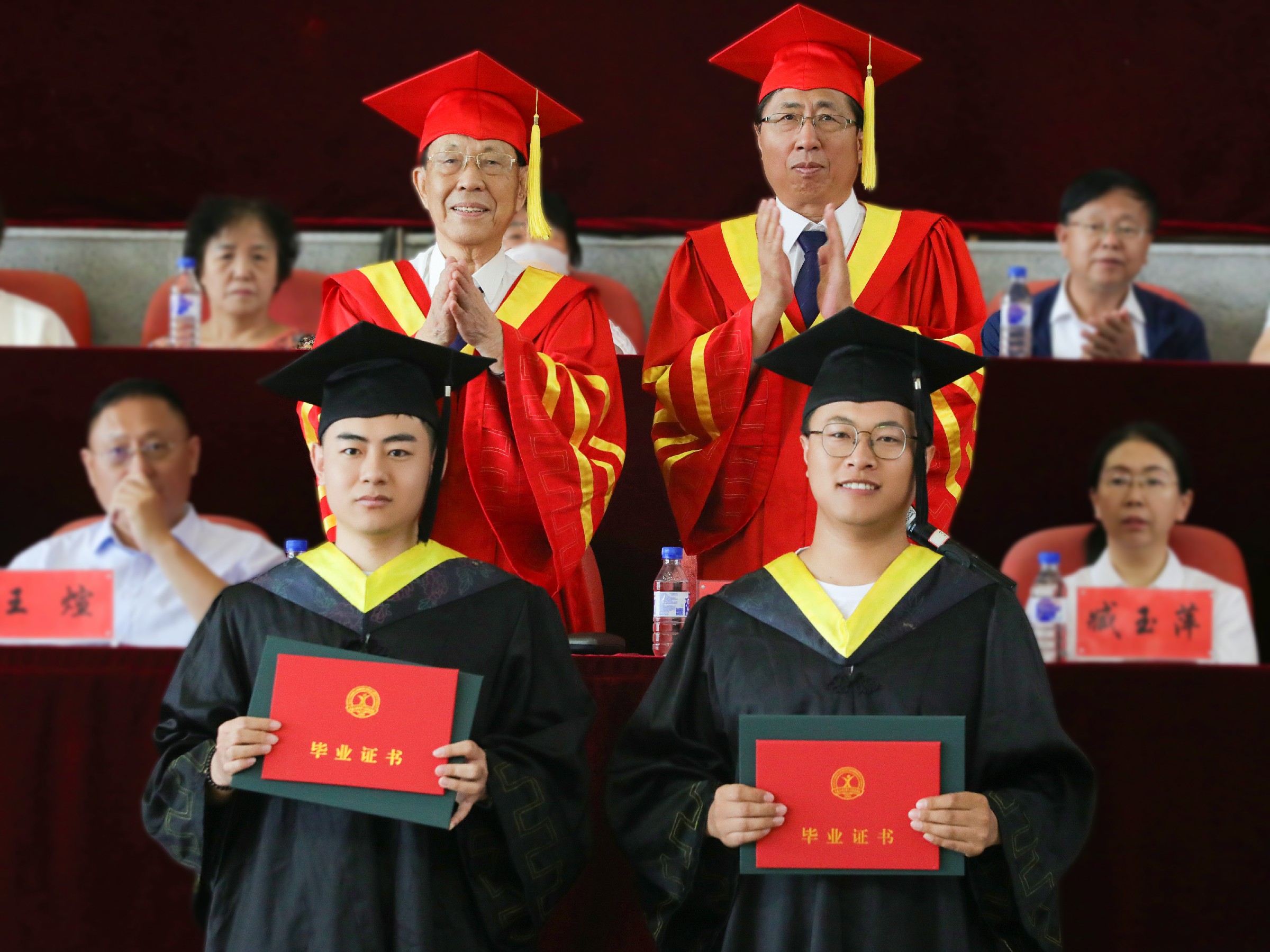 典礼现场,董事长张兆华、校长潘福林向毕业生代表拨穗正冠授予学位,并颁发毕业证书、学位证书。学校领导为优秀毕业生代表颁奖。