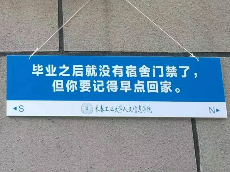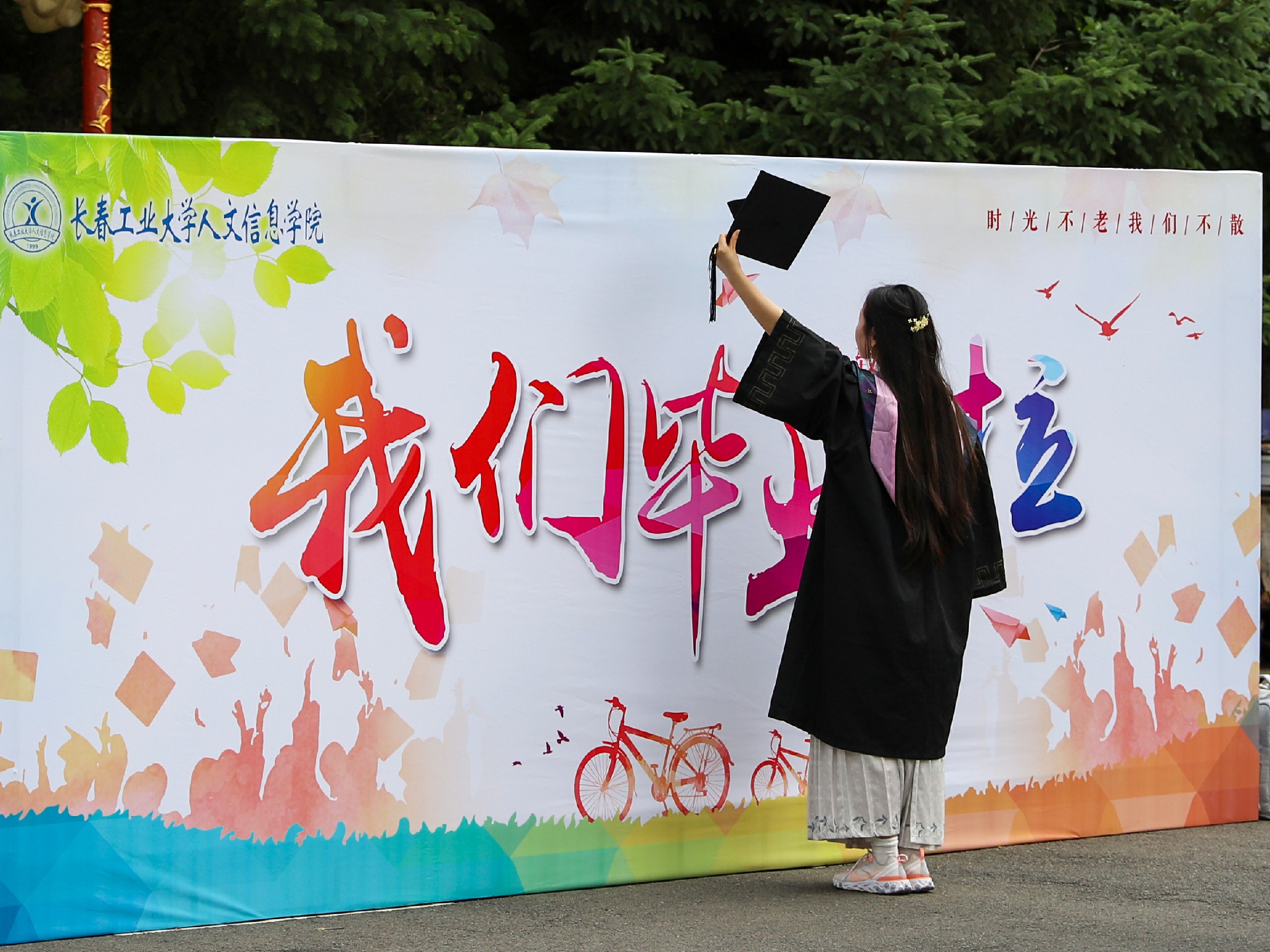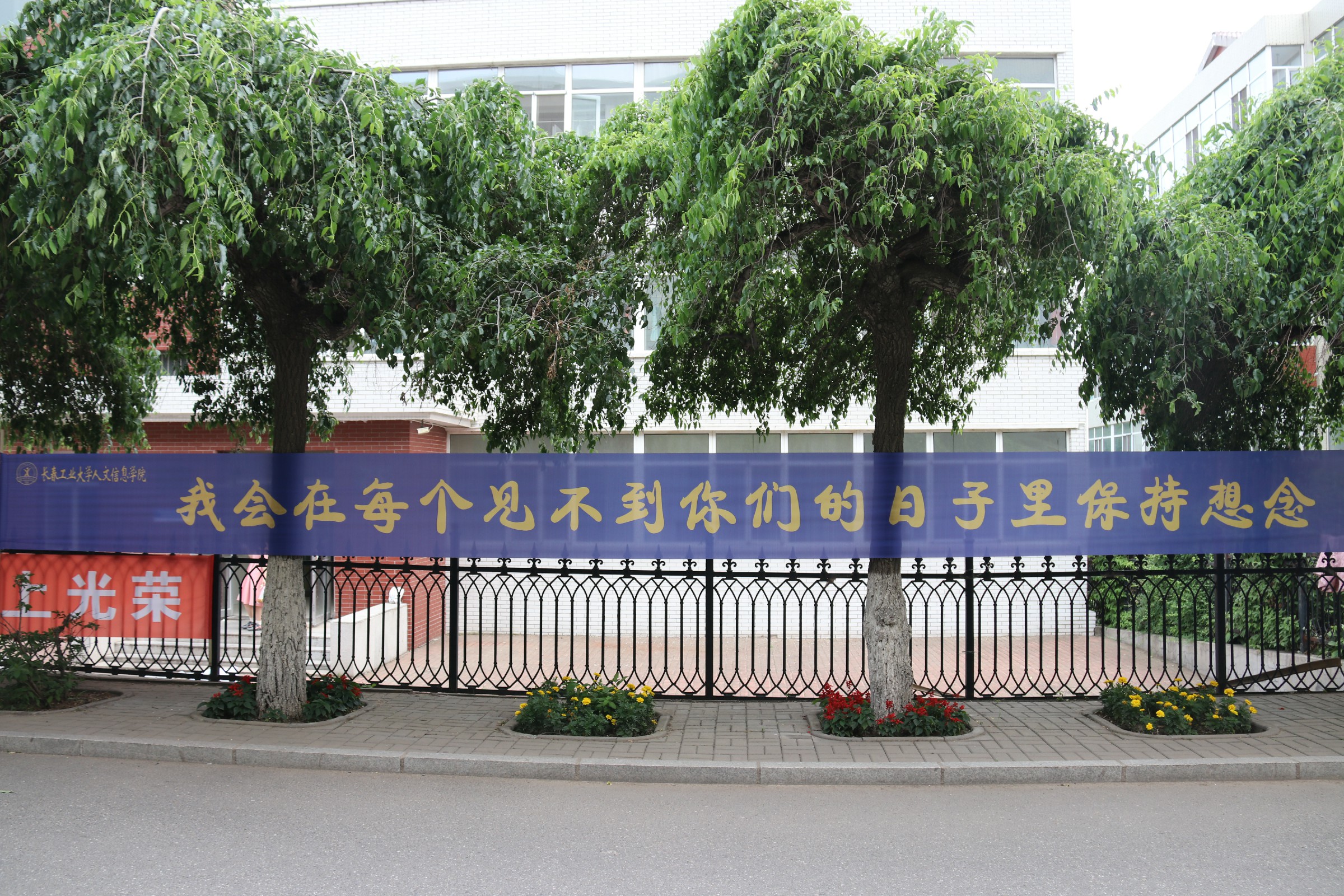 校园中,党委宣传部设计的一个个巨型拱门、彩球、背景板书写着对毕业生的祝福;一面面旗帜、一张张条幅镌刻着对毕业生的不舍;一处处充满深情的温馨“打卡点”感动着毕业生驻足合影留念。
