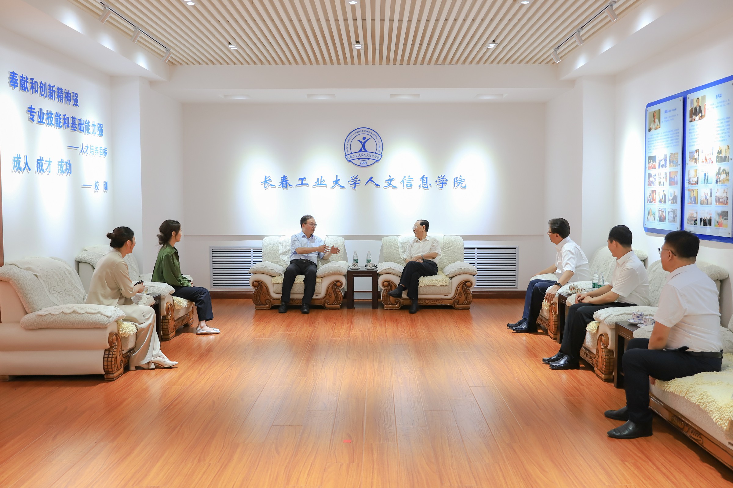 俞亚东理事长一行参观了长春工业大学人文信息学院校史馆,详细了解了学校建校24年来的发展成果和所取得的成绩。