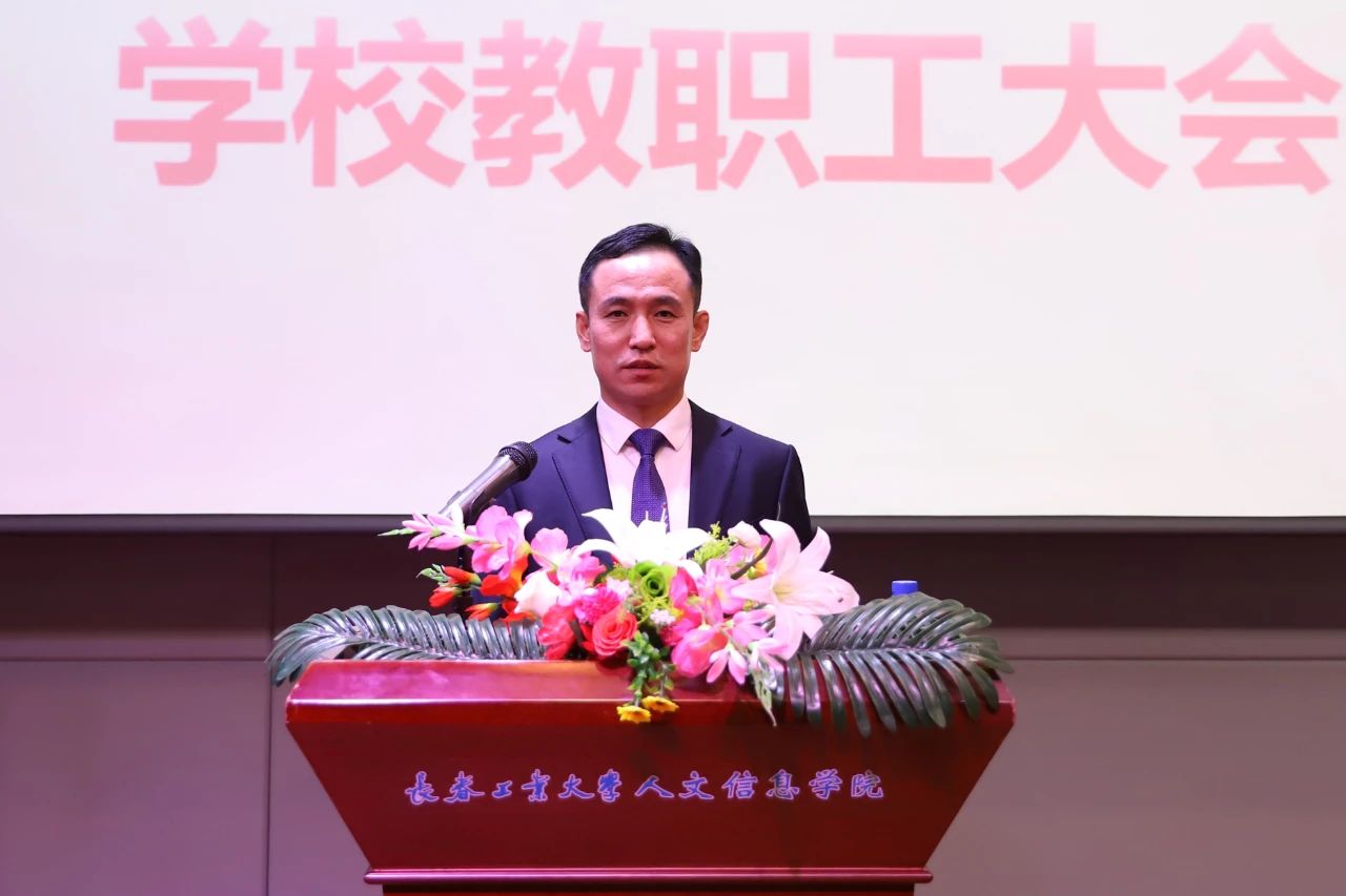 学校各部门负责人、各学院院长、党总支书记、全校教职工代表参加大会。