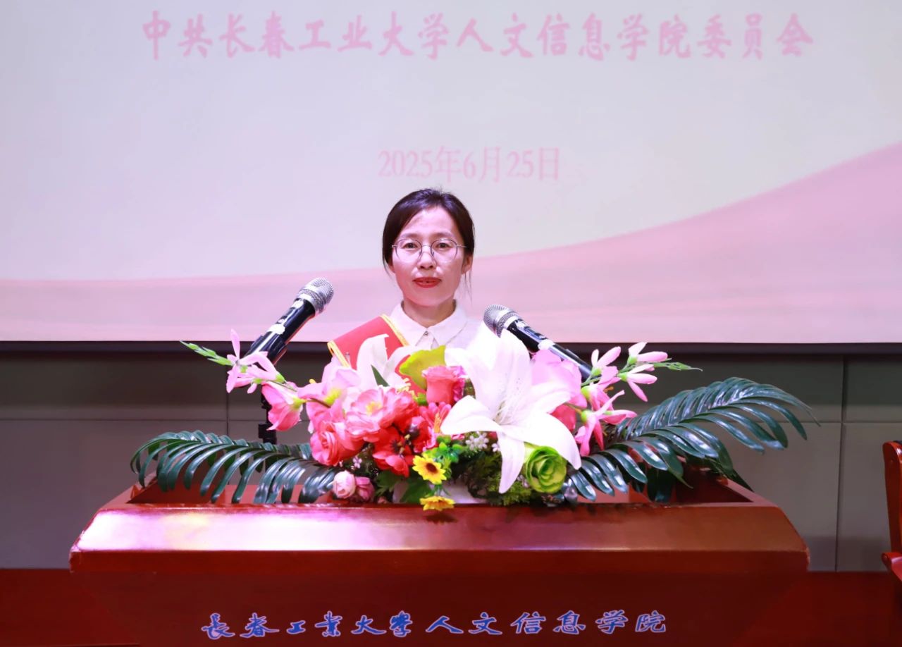 党委副书记周丹宣读《中共长春工业大学人文信息学院委员会关于表彰2023-2025年度优秀共产党员、优秀党务工作者和先进基层党组织的决定》。