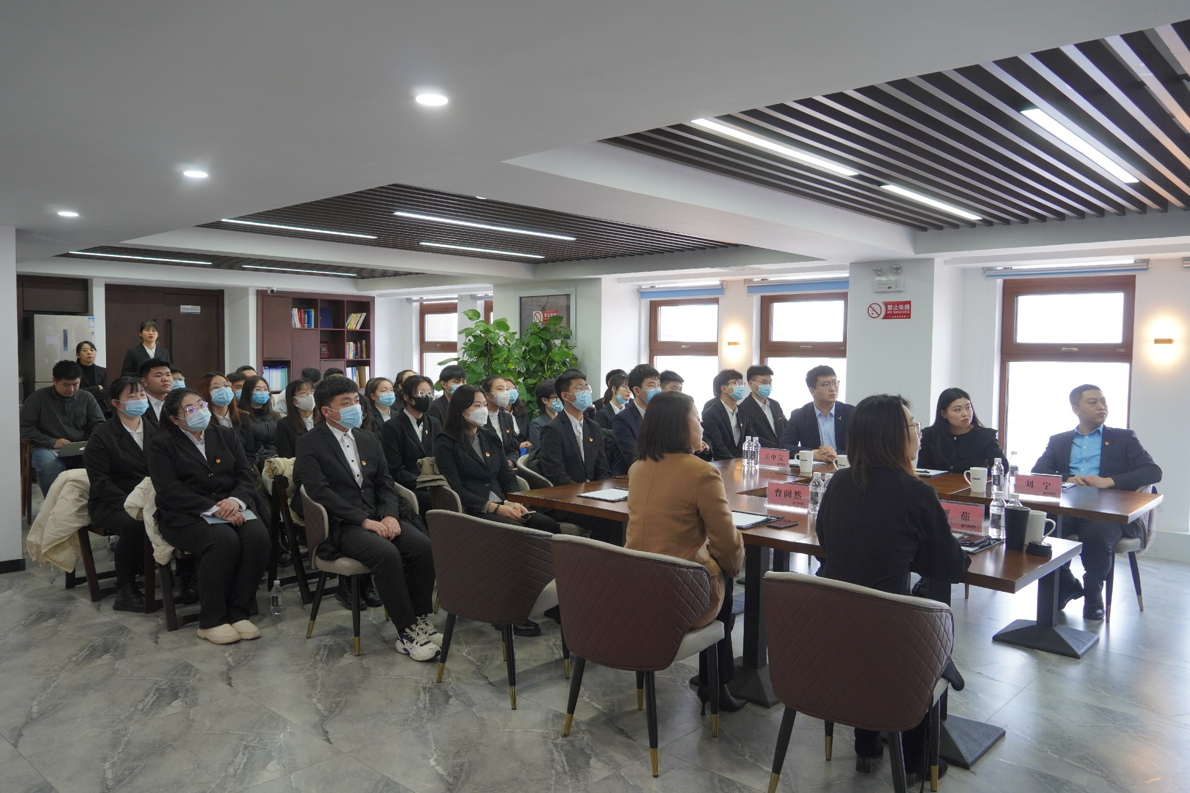 为帮助学生树立正确的职业生涯规划和就业目标,12月17日,法学院党总支书记刘宁、法学教研室教师王中宝、法律事务教研室教师王媛以及19级32名同学一行赴吉林良智律师事务所开展学生实践交流会。
