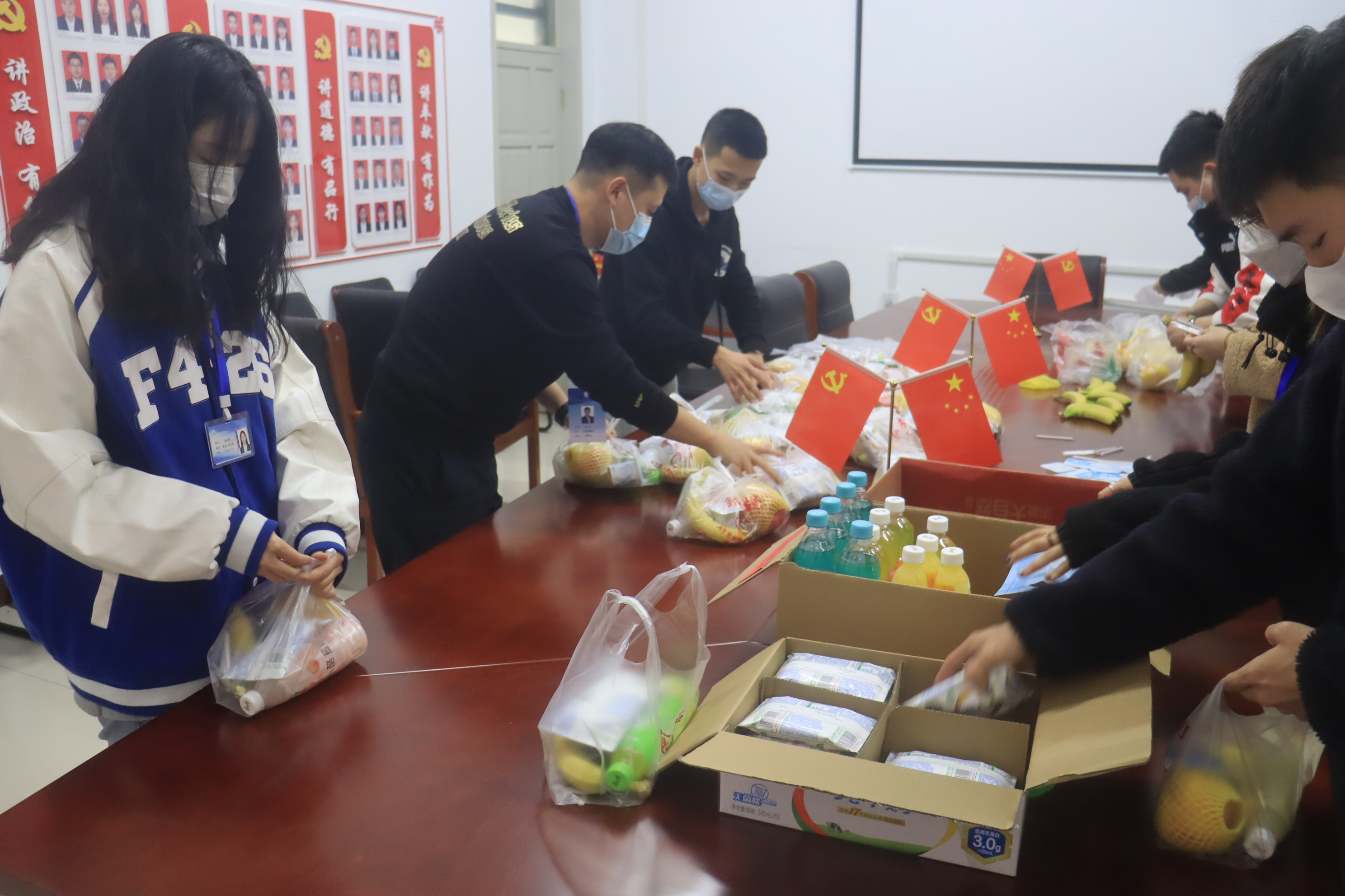 3月9日,在学院党总支的领导下,学院团委组织党员与学生干部开展了“疫情难阻爱,隔离不隔心”慰问活动,为隔离的同学们送上温暖。学院为隔离的同学采购了牛奶、水果、饮料等食品,鼓励隔离同学稳定心态,加强锻炼,保持积极向上的良好状态,让隔离的同学们感受到了“家”的温暖。