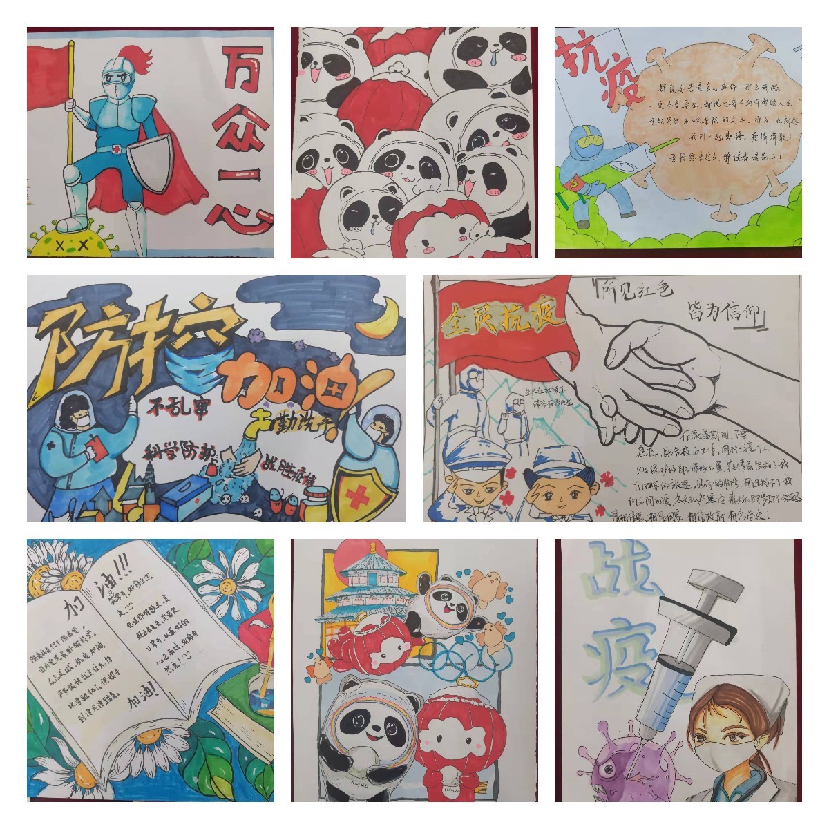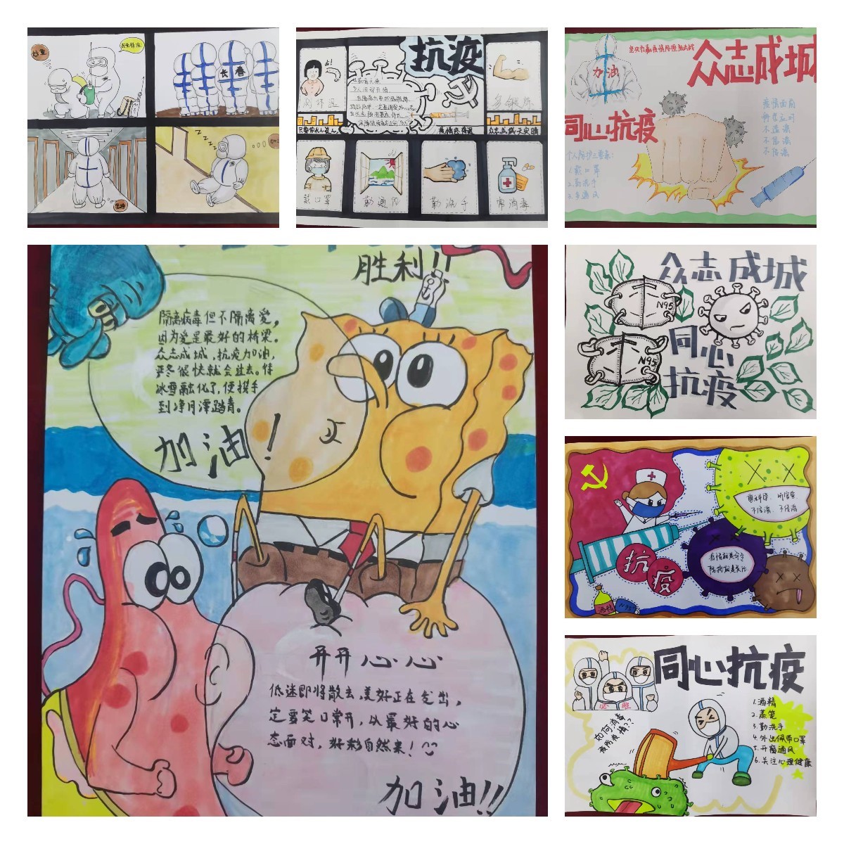 全院师生党员拿起纸笔绘制体现抗疫精神的作品,展现艺术设计学院全体师生党员面对疫情,“‘艺’路同行 戮力战疫”的乐观向上的精神风貌。