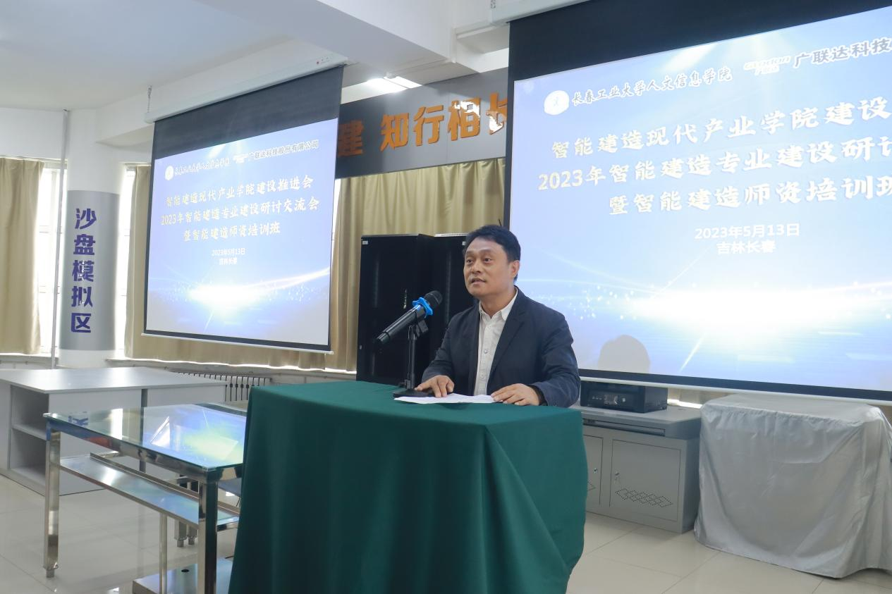 5月13日,由吉林省土木建筑学会、吉林省住房和城乡建设职业教育教学指导委员会指导,我校与广联达科技股份有限公司联合举办的智能建造现代产业学院建设推进会暨智能建造师资培训班在学校智慧建造综合实训室组织召开。学校副校长臧玉萍、教务处处长曲永军,青岛理工大学智能建造实验室主任崔维久,广联达科技股份有限公司彭阁经理、岳科杰经理等出席会议。本次活动得到了吉林建筑大学、东北电力大学、长春大学旅游学院、吉林建筑科技学院、长春建筑学院、四平职业大学、吉林工程职业学院、吉林铁道职业技术学院等多所省内高校相关专业领导和老师的热烈响应,近50人参会。