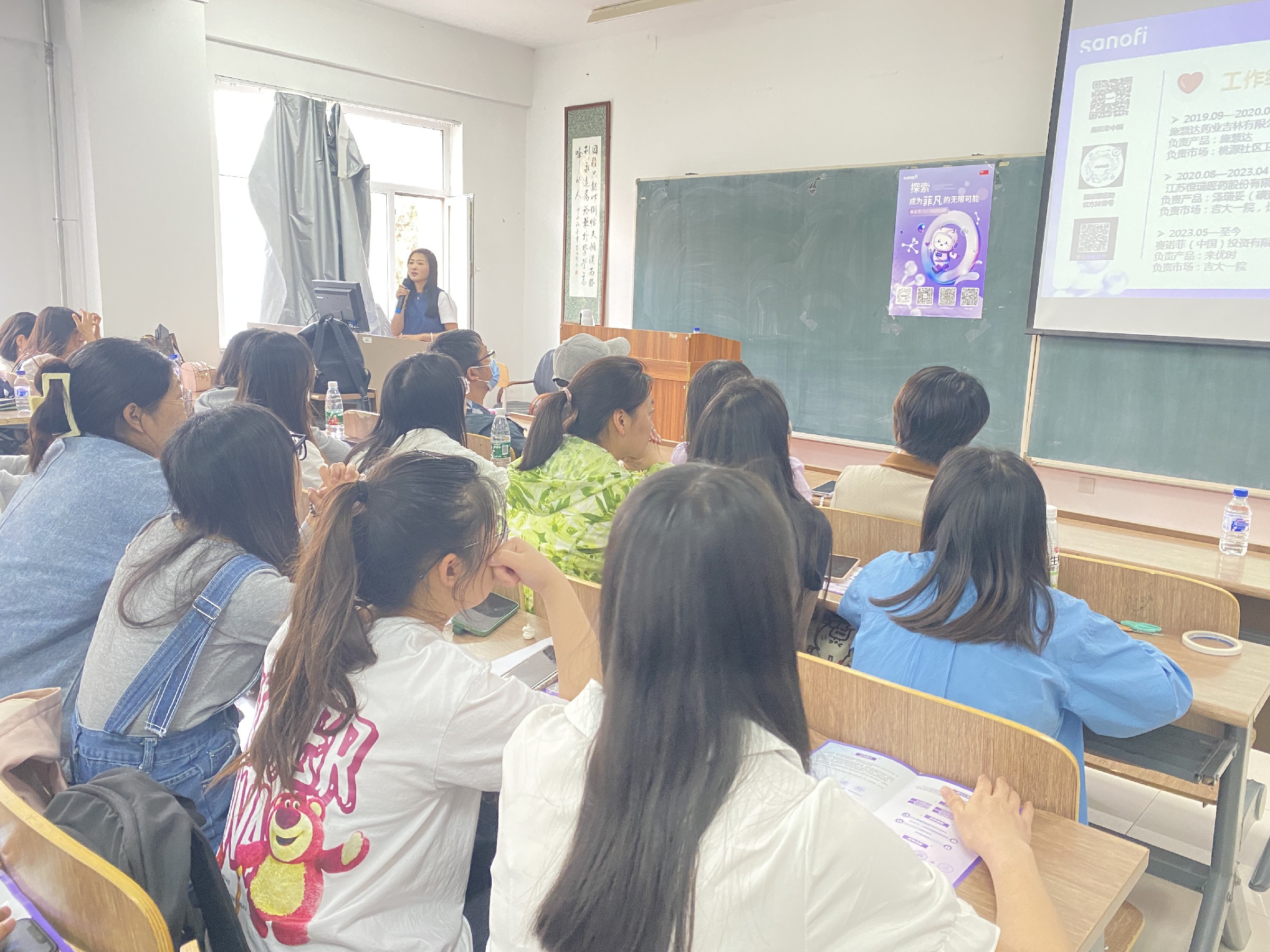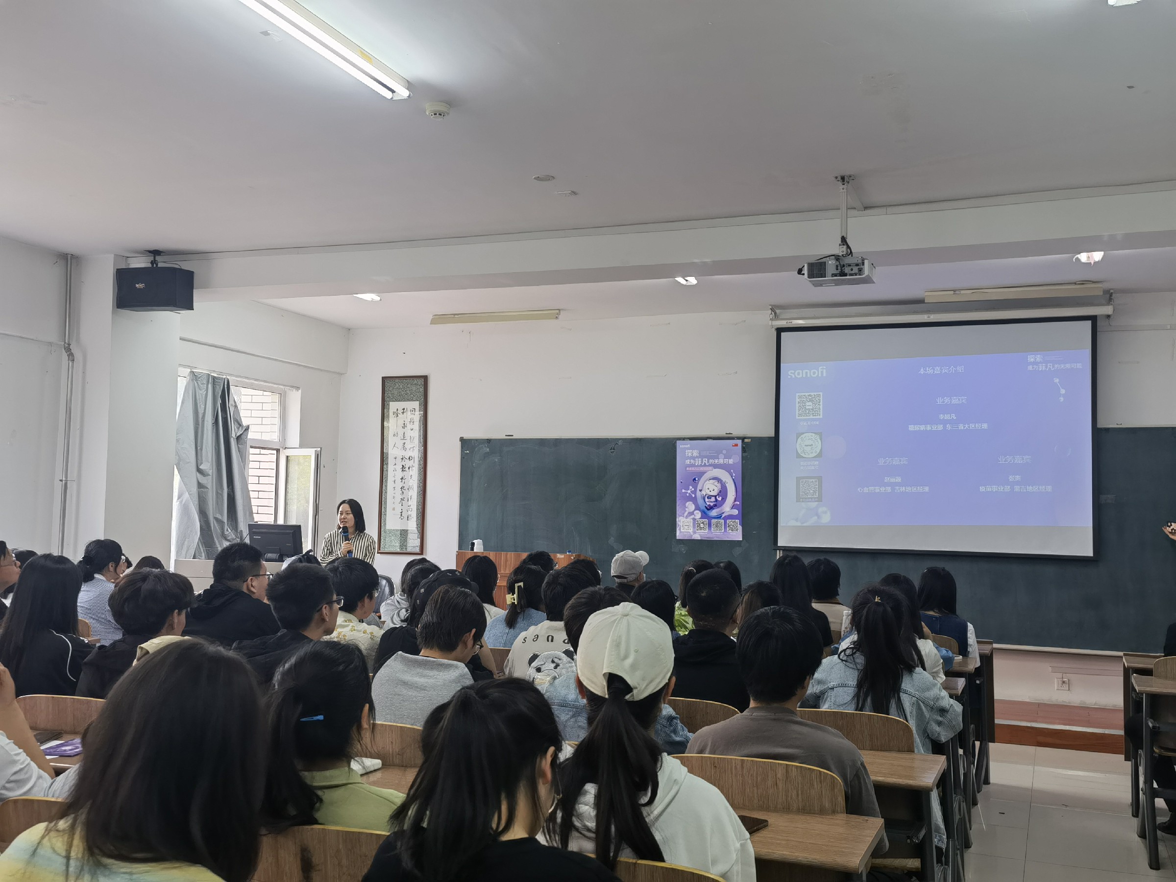 赛诺菲(中国)投资有限公司东北大区经理李超凡,糖尿病事业部地区经理朱丽娜,疫苗事业部地区经理张爽,心血管事业部地区经理赵丽颖及赛诺菲医药信息沟通代表制药工程学院16级优秀毕业生刘凯鑫,分别对企业的发展情况进行宣讲,并表示愿意与制药工程学院深入合作。