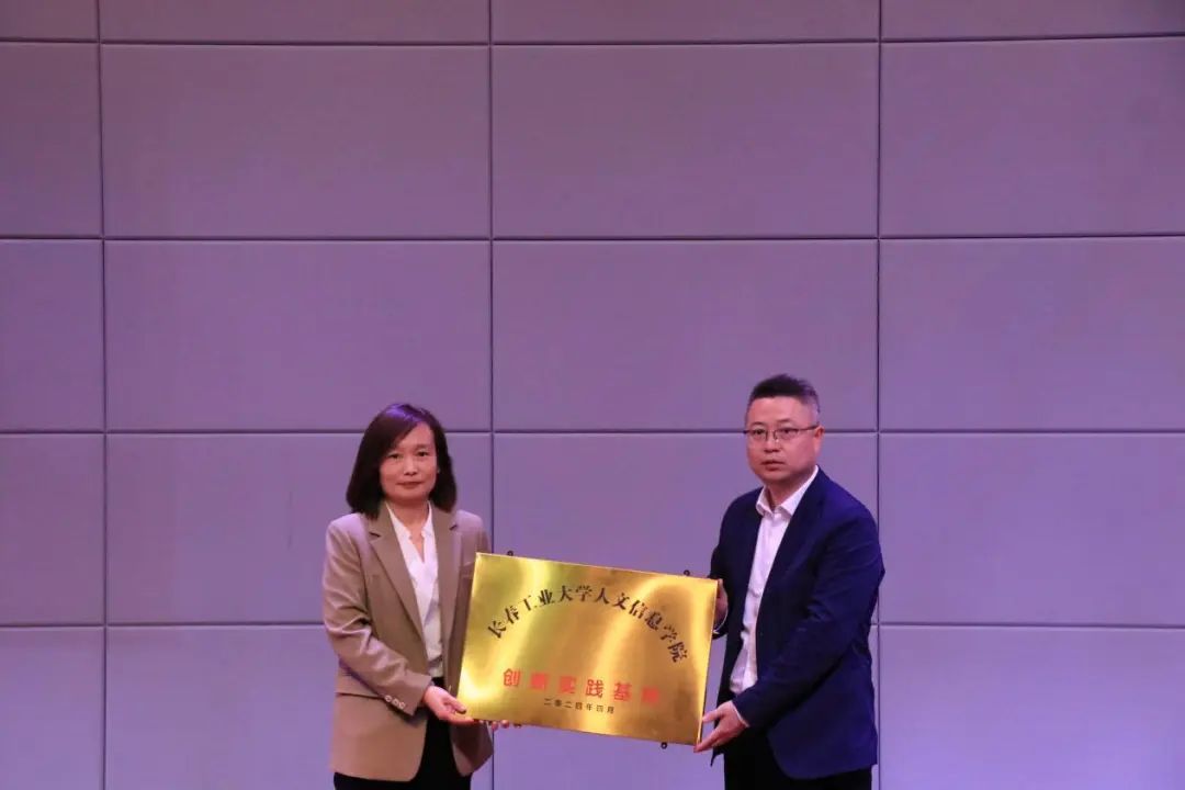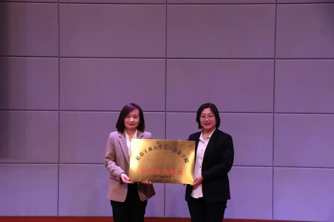 教务处副处长郅明铭为吉林省求实建设软件有限公司、帆书长春运营中心授予创新实践基地牌匾。