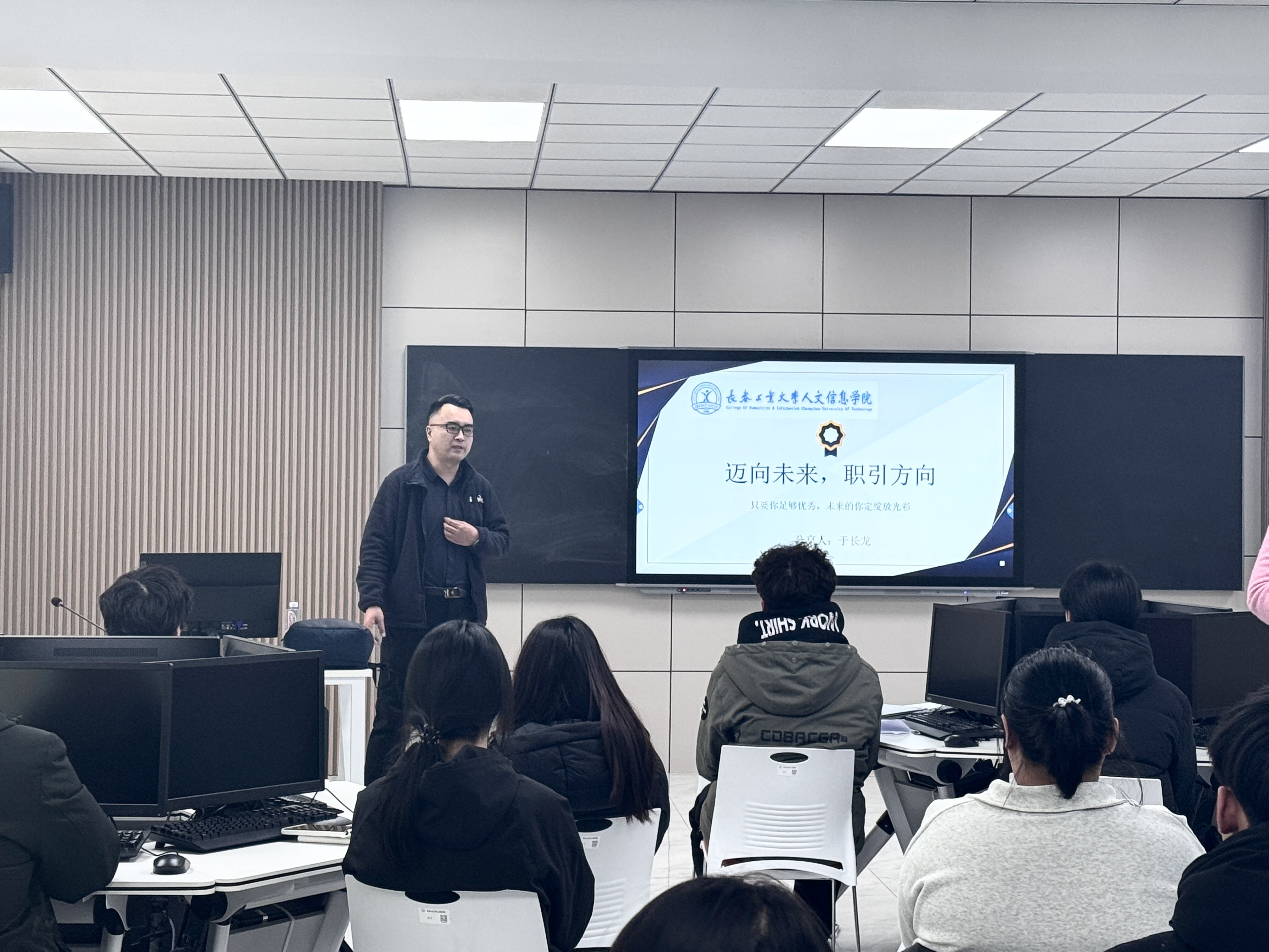 主讲人于长龙以《迈向未来,职引方向》为主题,围绕考研、公务员考试以及职业规划三个篇章,从大学期间的能力培养、职业选择的切入点等角度深入浅出展开话题,特别是对就业所需的专业技能、沟通能力、团队协作能力、问题解决能力以及持续学习能力等关键要素进行了详细阐释,并在职业素养方面重点强调了职业道德、职业态度、职业形象及职业规范等素养要求。于长龙以其行业专家和资深经理人的丰富经验与深刻见解,与参加沙龙活动现场的师生代表进行了互动,反响热烈。此外,活动还安排了互动环节,鼓励大家踊跃参与讨论和交流,通过分享个人经验与心得,实现相互学习、共同提高。