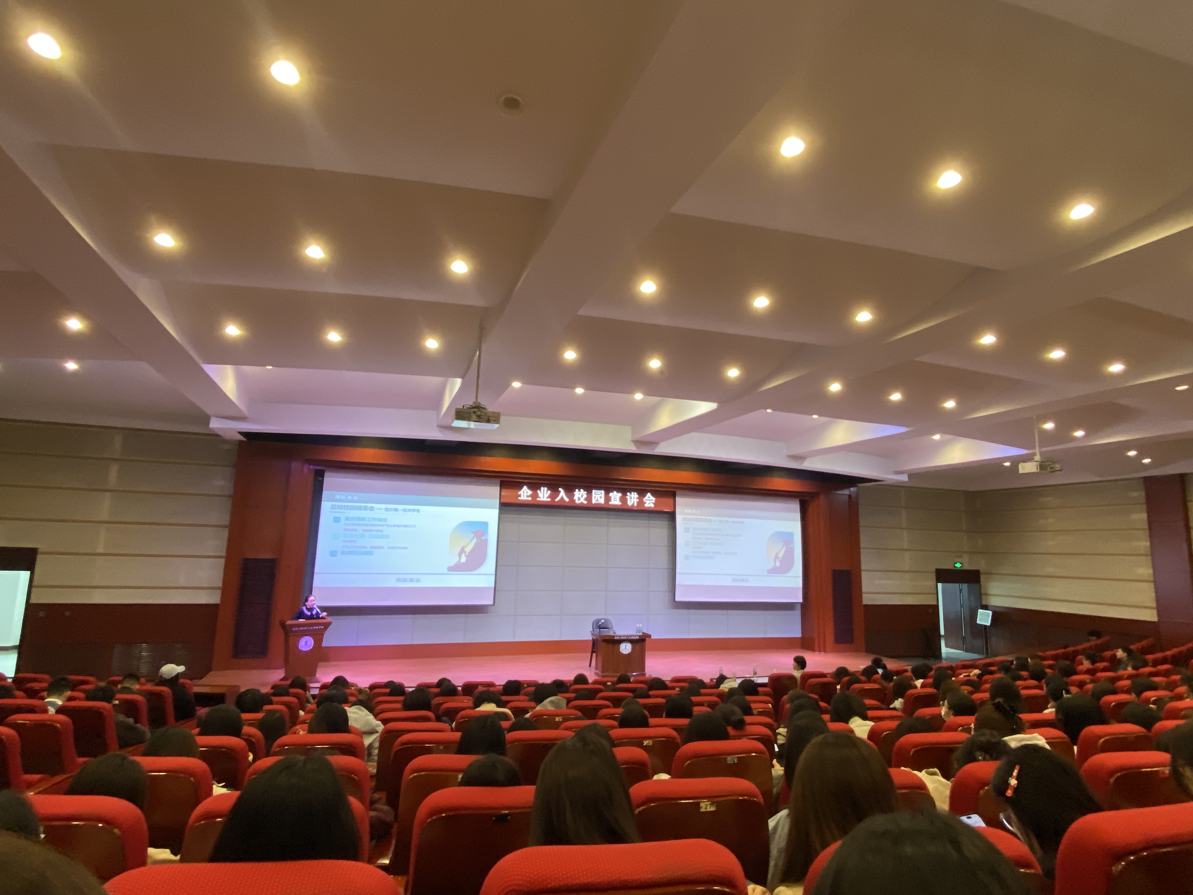 宣讲会上,行韵教育负责人裴敬莹介绍了公司的发展历程、特色文化与成就,让同学们对公司有了初步认识。在企业文化分享环节,“互为土壤,共同成长,共同进步” 的理念令学生印象深刻。在岗位与职业发展介绍环节,裴敬莹详细讲解了岗位需求、用人标准和职业规划。针对学院英语、商务英语、日语等专业,公司提供了匹配度高的各类岗位。在互动交流环节,同学们积极提问,围绕专业对口、人才素质要求等表达关切。公司负责人耐心解答,介绍了为员工定制的培训学习机会,以及完善的晋升体系,为积极进取的员工提供上升通道。