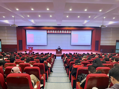 “国无防不立,民无军不安”。为深入贯彻习近平强军思想,进一步落实国家相关征兵工作要求,帮助大学生全面了解征兵政策,激发应征入伍热情。4月14日,法学院在学术报告厅举办征兵政策宣讲会。本次宣讲会邀请学校武装部征兵工作办公室主任娄旸讲解征兵政策,法学院团委书记周远航、辅导员张斯尧以及2023、2024级全体学生参会。会议由法学院团委学生副书记宫米其主持。