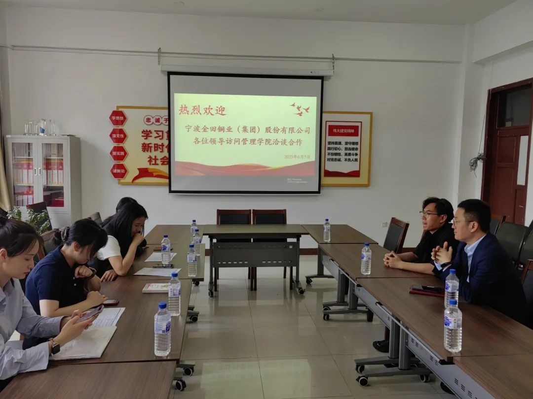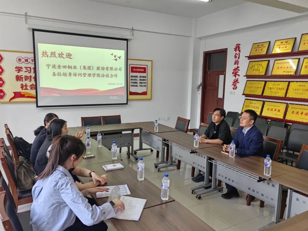 65日下午,应我校管理学院邀请,宁波金田铜业(集团)股份有限公司孙娜君经理一行四人来校开展合作洽谈。