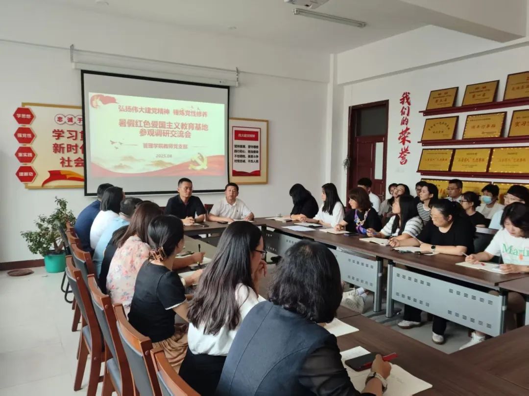 8月27日,管理学院教师党支部利用主题党日组织召开总结交流会,对此次研学活动的开展情况进行全面回顾、深入复盘与系统总结。交流会上,党员教师们踊跃发言,热情分享参观调研中的所见所闻、所思所感,现场氛围浓厚而热烈。