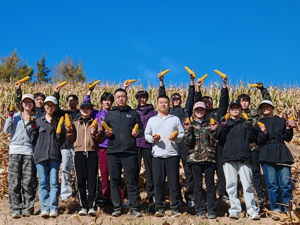 抵达田间,泛黄的玉米地铺展至远方,沉甸甸的玉米穗垂坠在秸秆上,满是丰收的模样。多数同学是第一次采收玉米,但大家跟着农户学技巧、听老师讲要领,指尖划过粗糙的玉米皮,外皮“唰”地撸到根部,留两层软叶裹住金黄棒芯,再顺手甩两圈理顺,动作渐渐熟练。田间满是欢声笑语,有人比谁采收得又快又好,有人捧着成果拍照,汗水虽然淌在脸上,劳动的快乐却洋溢在每个人心中。