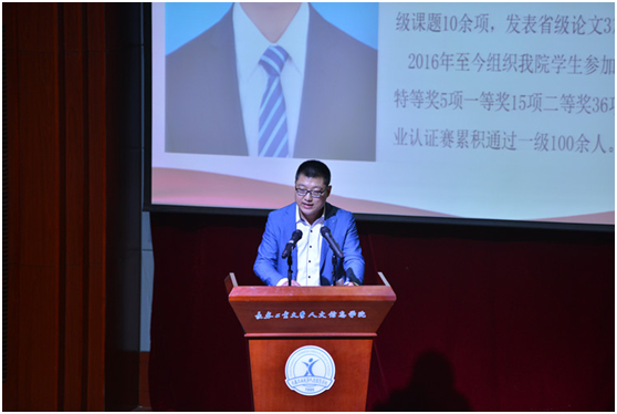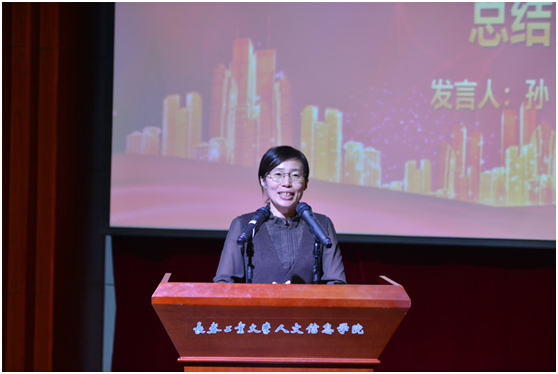 大会第六项,学院副院长孙娜讲话。总结了一年来学院工作10大亮点,并强调总结、表彰是为了更好的前行,面向全院师生进行总结、表彰,是为了能够携手同行!每一项成绩只有化为学生成人、成才、成功的助力才真正有价值。号召同学们做自律、自信、自强之人,用实际行动诠释新时代大学生的责任担当!