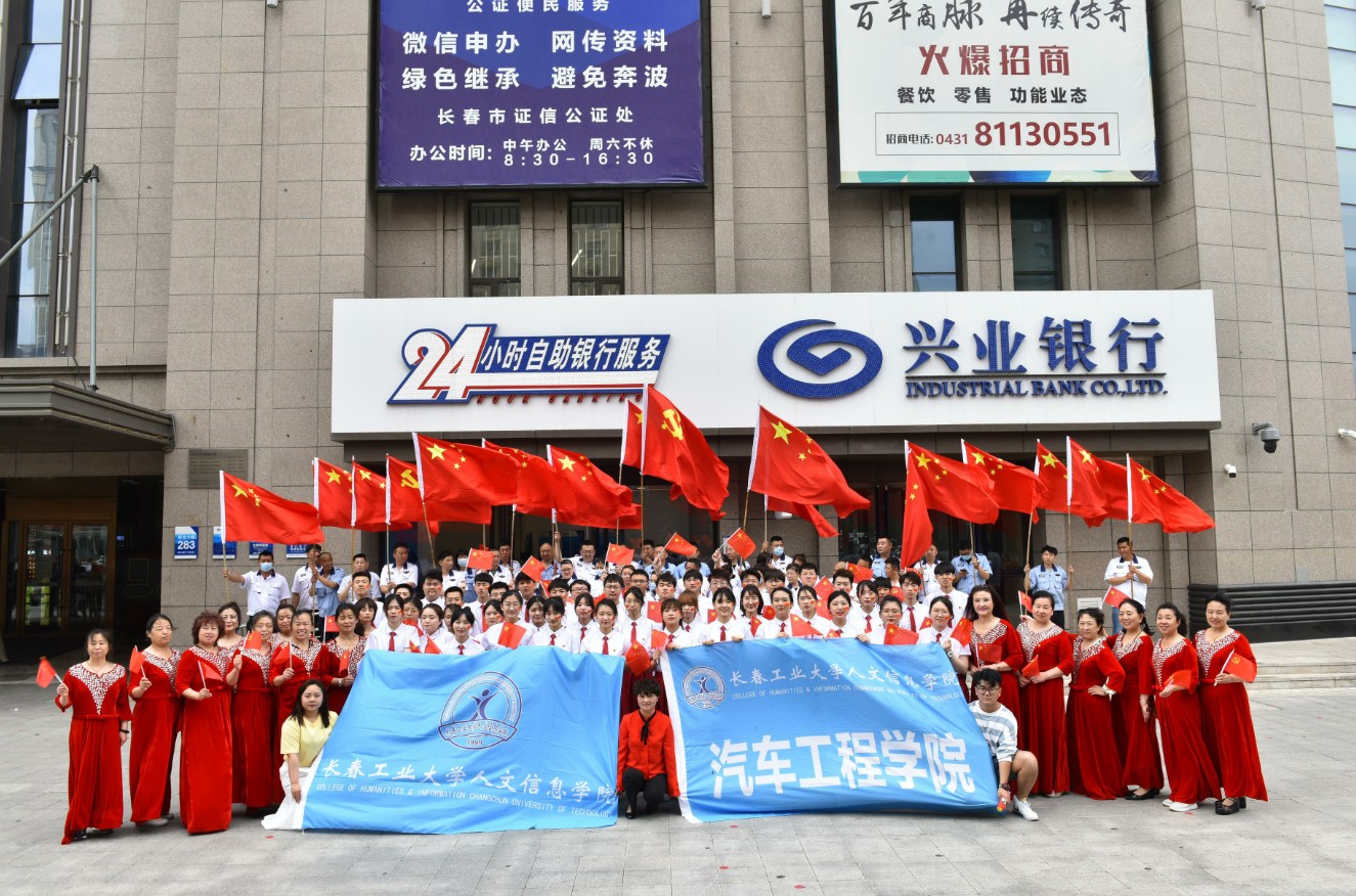 “斩浪红船勇向前,匡扶华夏换新天。九州昌盛黎民乐,百业繁荣捷报传。抗疫除灾凭大爱,飞天探月着先鞭。中流砥柱雄风在,万众同心庆百年。”6月9日下午,长春市南关区全安街道党工委、塘子胡同社区党委联合长春工业大学人文信息学院和郊线公司一支部开展“青春心向党 百年正辉煌”红歌航拍快闪活动,共同向中国共产党百年华诞献上祝福。汽车工程学院17名同学代表学校参与了本次演出。