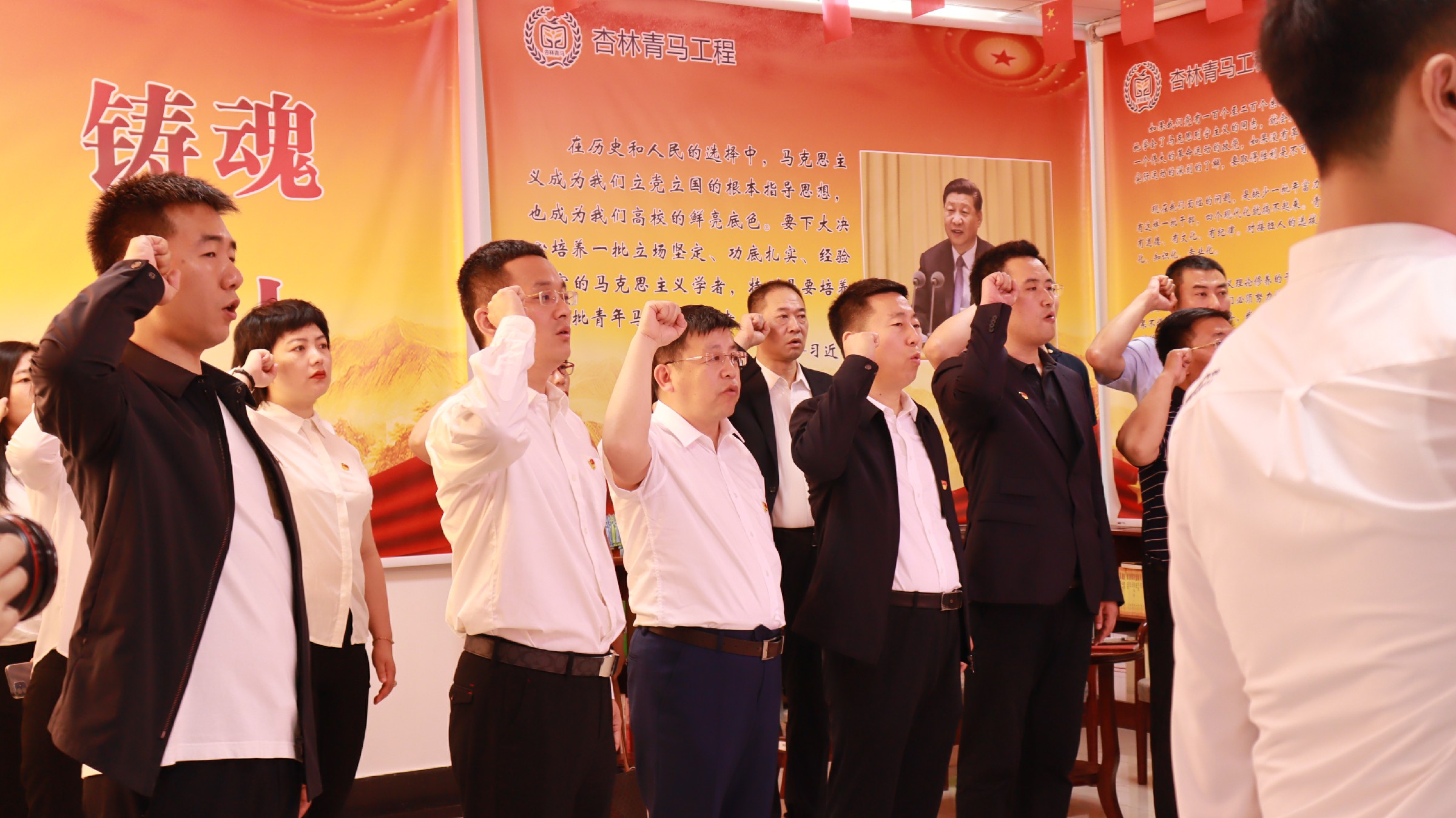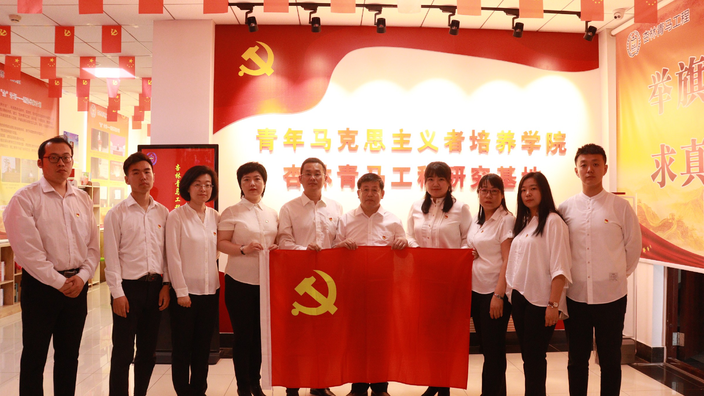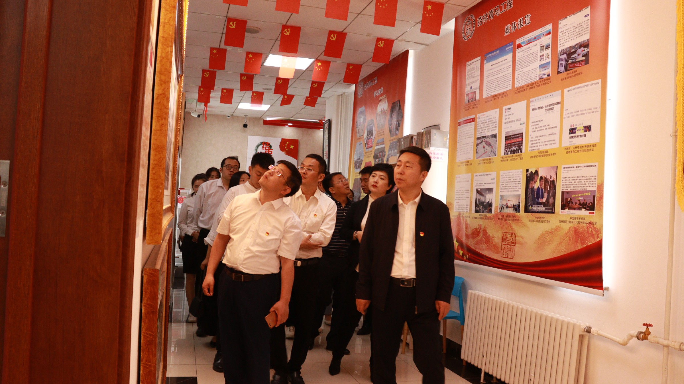 在红色长廊,全体党员先后参观了杏林青马导师简介、杏林青马成果图片展、多功能教室、文化沙龙活动室等教学活动场所。大家纷纷表示,要深入学习马克思主义理论,努力成为青年马克思主义者,做中国特色社会主义的践行者、中国传统文化的继承者、弘扬者和建设者。