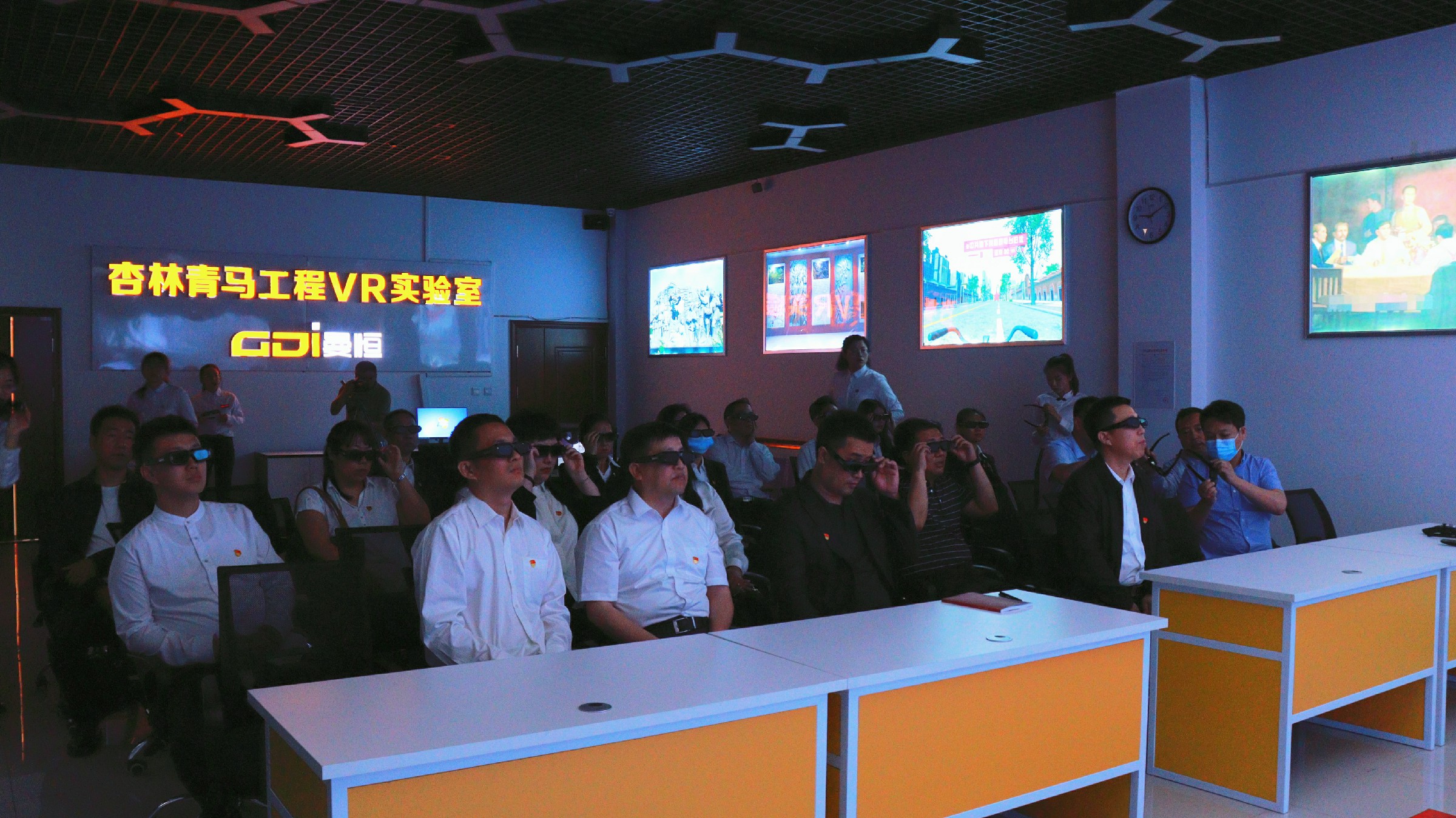 在杏林青马宣讲团成员的讲解下,全体党员系统学习了杏林青马工程从1.0到4.0的跃迁历程,以及工程宗旨、运行机制、选拔机制和培养模式等内容。通过对“数读青马”展板对杏林青马工程“14235”培育模式学习,激励党总支成员不断提升思想境界、政治觉悟、道德品质以及文化素养。随后,大家又来到杏林青马工程VR实验室,观看3D动画《杨靖宇》。影片讲述了人民英雄杨靖宇领导东北抗联部队抗击侵略者,在白山松水间与敌人进行艰苦卓绝的斗争的英勇事迹。通过VR实训,使全体党员直观感受到人民英雄的牺牲、奉献精神,激发了大家的集体主义精神和爱国主义情怀。