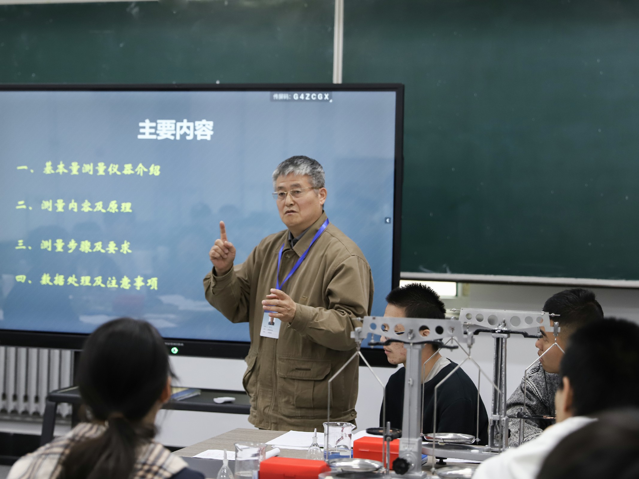 学校领导深入大学物理实验课堂,听了教师韩也、毕冬梅讲授的大学物理实验课—《基本测量》,课堂上教师教学态度严谨,备课充分,通过多媒体课件与仪器操作相结合的授课方式,让学生了解物理实验的基本思想、方法和技能,学生们精神饱满,课堂气氛活跃。