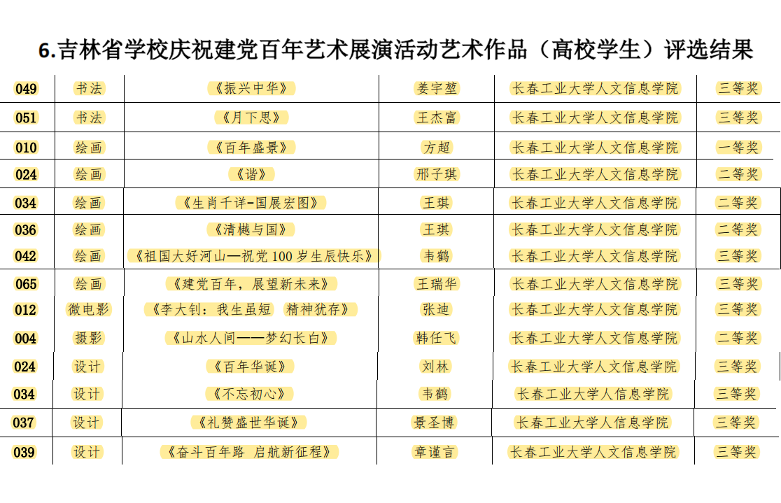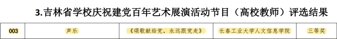 近日,吉林省教育厅下发了《关于公布吉林省学校庆祝建党百年艺术展演及第一批优秀学生美育社团创建活动评选结果的通知》,我校在此竞赛活动中荣获优秀组织奖,师生获得4项集体荣誉,23项个人荣誉。获奖情况如下: