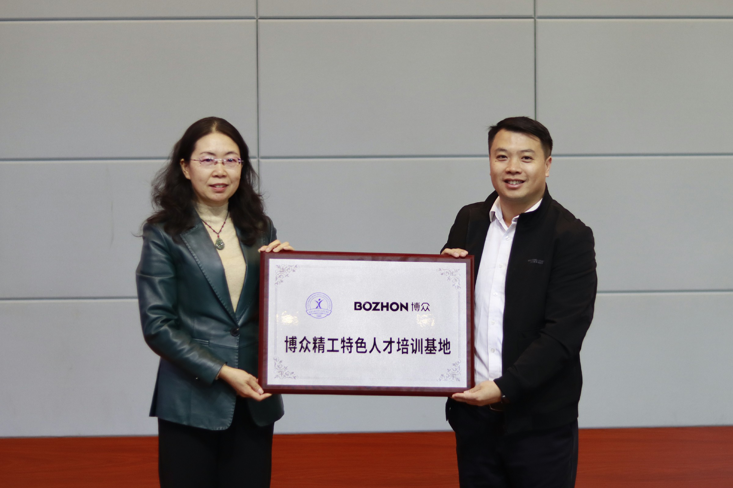 仪式上,潘福林与董浩共同签署了校企“特色人才培训基地和博众软件定向班”协议,王煊和宋怀良共同为“校企共建实习实训室”授牌,臧玉萍和郝大川为“特色人才培训基地”授牌,吕秀江和冯亮为“博众软件定向班”授牌。“校企共建实习室”、“特色人才培训基地”和“博众软件定向班”的正式成立是我校“校企深度融合”工作取得进步的一大重要标志,也是我校与博众集团合作共赢的新起点。