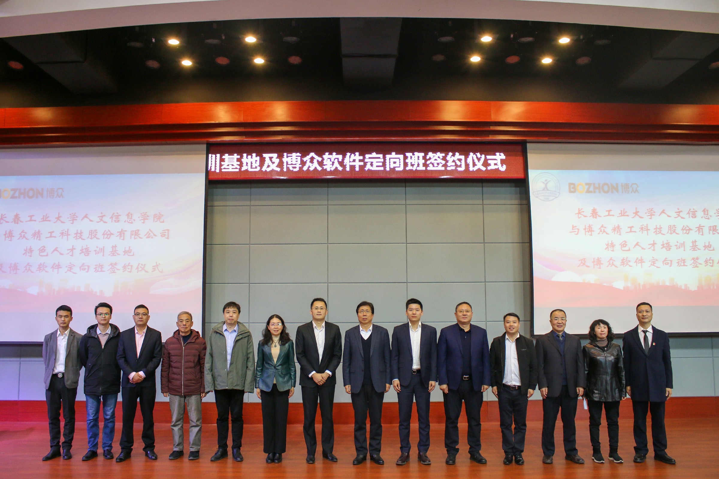 为加强产教融合,构建协同育人、“3+1”培养育人模式,10月19日,我校与博众精工科技股份有限公司在学术报告厅举行了“特色人才培训基地及博众软件定向班”签约仪式。博众集团副总裁兼消费类电子事业群总经理董浩,长春工业大学人文信息学院校长潘福林,党委书记王煊,副校长臧玉萍等校企双方领导出席签约仪式。仪式由机电工程学院党总支书记秦海雷主持。