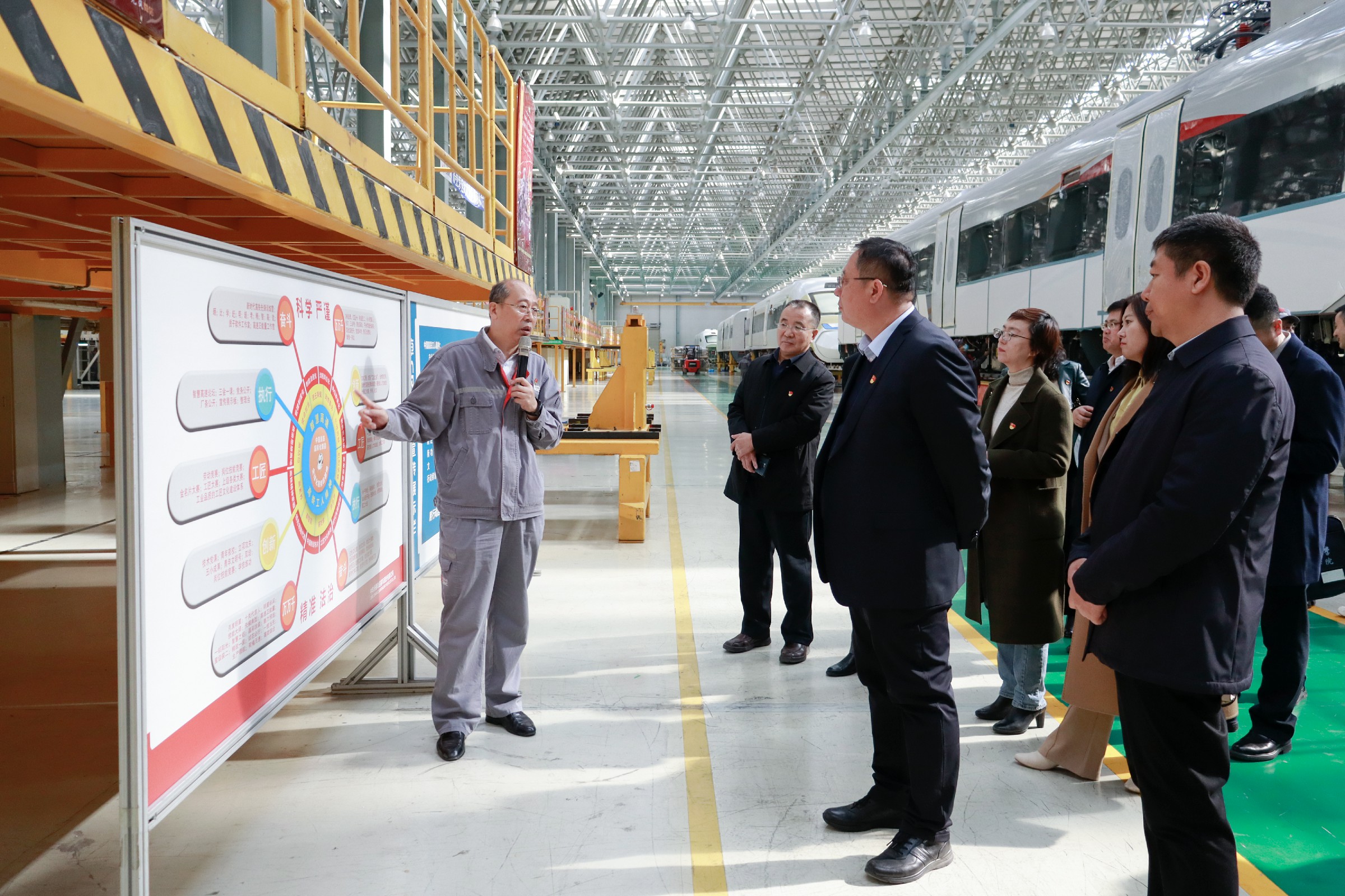 10月21日上午,在中车长春轨道客车股份有限公司高速动车组制造中心党委书记郭宏伟等领导的陪同下,双方领导带队一同参观了铝车体车间、装配车间、复兴号智能动车组。参观人员在“周晶辉国家技能大师工作室”驻足观看,聆听周晶辉大师讲述“大国工匠精神”。 郭宏伟书记对中车文化、党建特色、长春轨道客车股份有限公司党建工作体系、各车间党支部党建特色品牌、车间生产管理等情况进行了详细介绍。