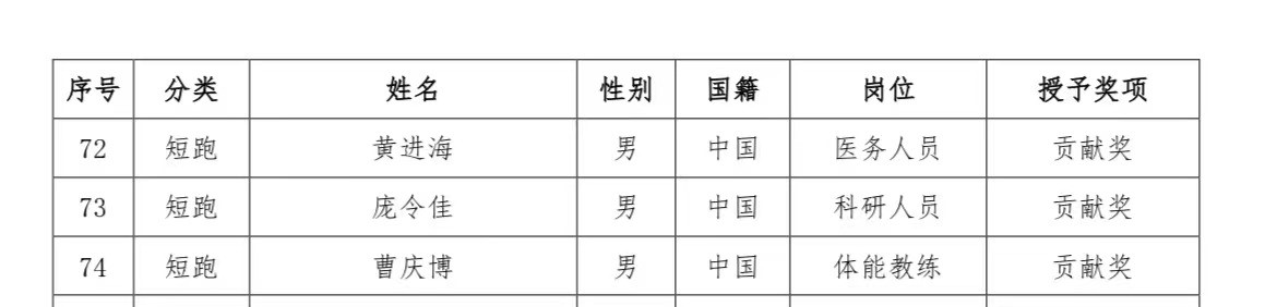 我校体育教研部教师曹庆博,在中国田径协会发布的关于表彰田径项目备战2020年东京奥运会贡献单位和个人的决定中,荣获贡献奖。