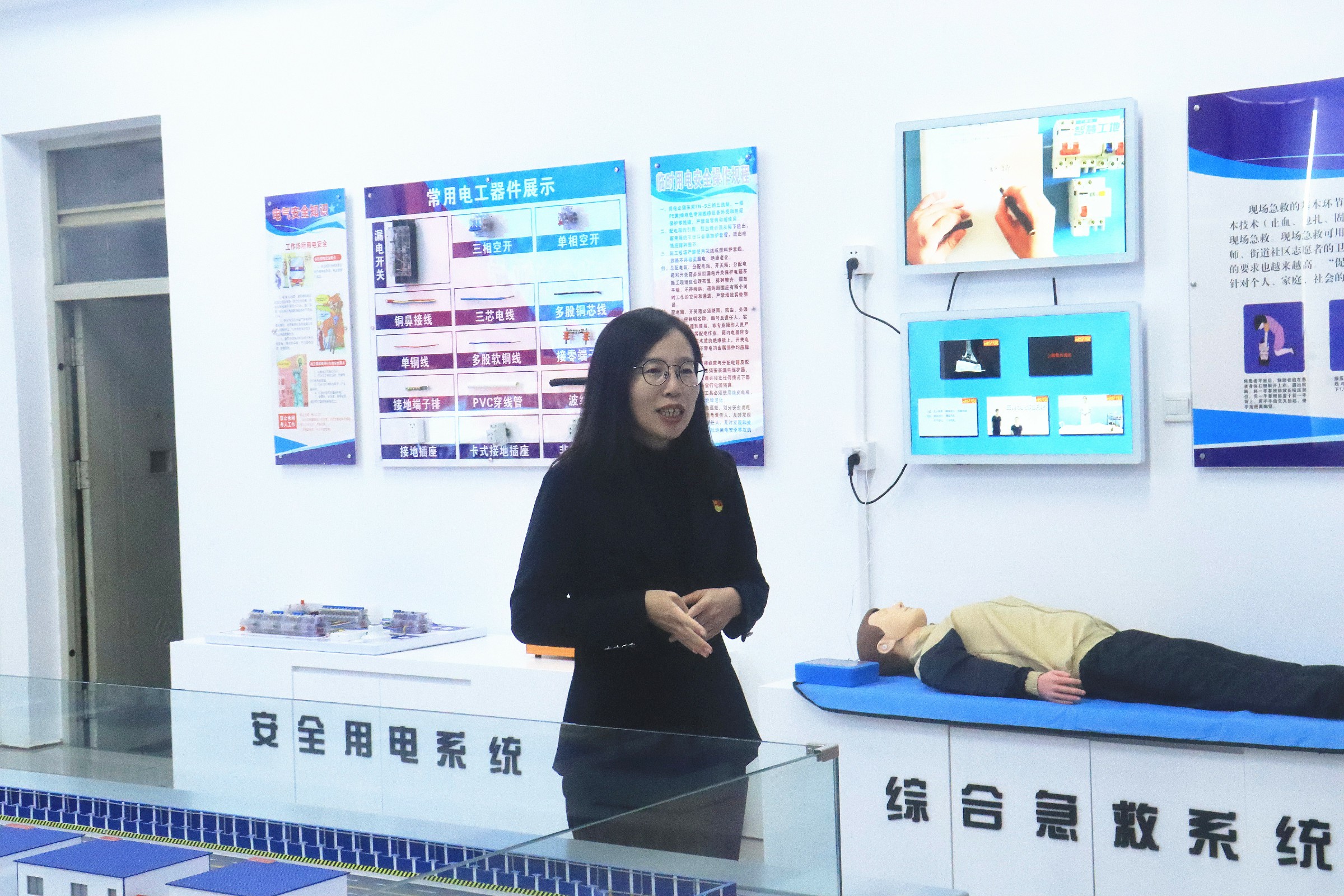 建设工程学院院长孙娜汇报了智慧建造综合实训室的功能特色。空间布局上,打造“五区一馆”,协同联动;特色定位上,集教、学、练、考、评于一体,集体验式、沉浸式、互动式于一体,集趣味性、开放性、先进性于一体;建设目标上,在促进传统专业转型升级、新工科专业健康发展的同时,逐步增强校内实践基地社会服务功能,持续深化校企合作、产教融合。