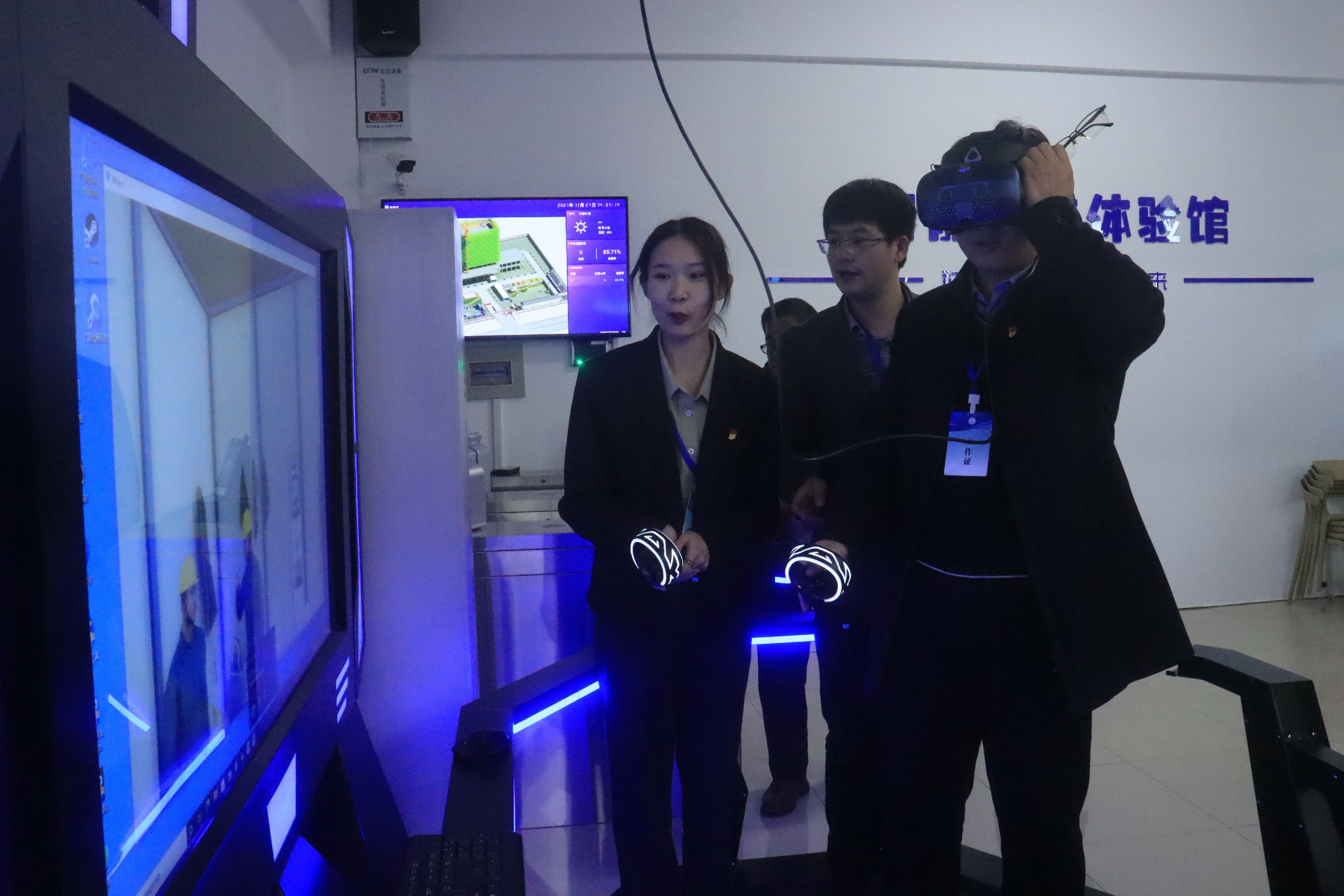 建设工程学院实验室主任徐艳召汇报展示了智能建造体验馆各模块的功能特色,涵盖智慧工地虚实一体化平台、无人机智能测绘、大型智能机械操作、安全教育体验考核平台等,并邀请各位领导操作体验。