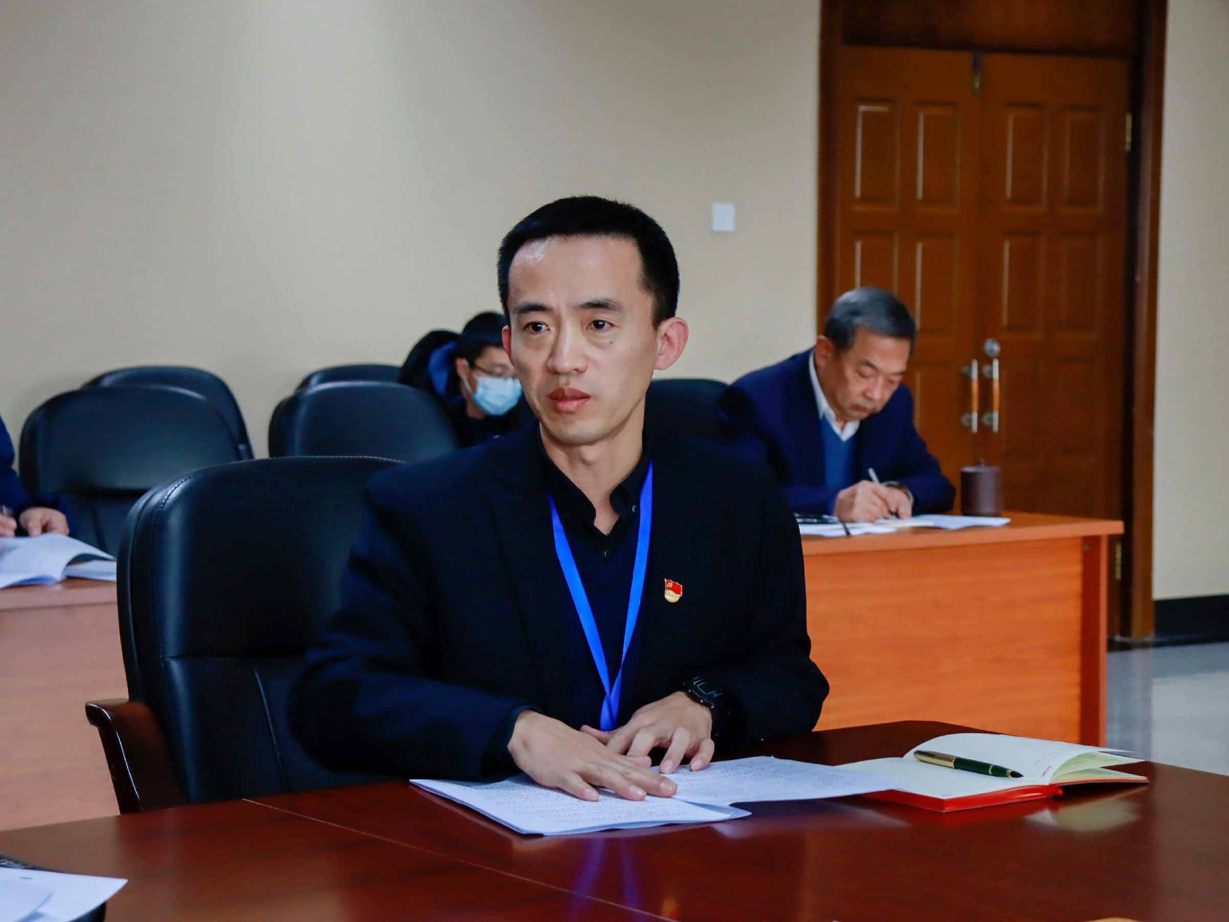 校长潘福林主持会议,各部门负责人参会。