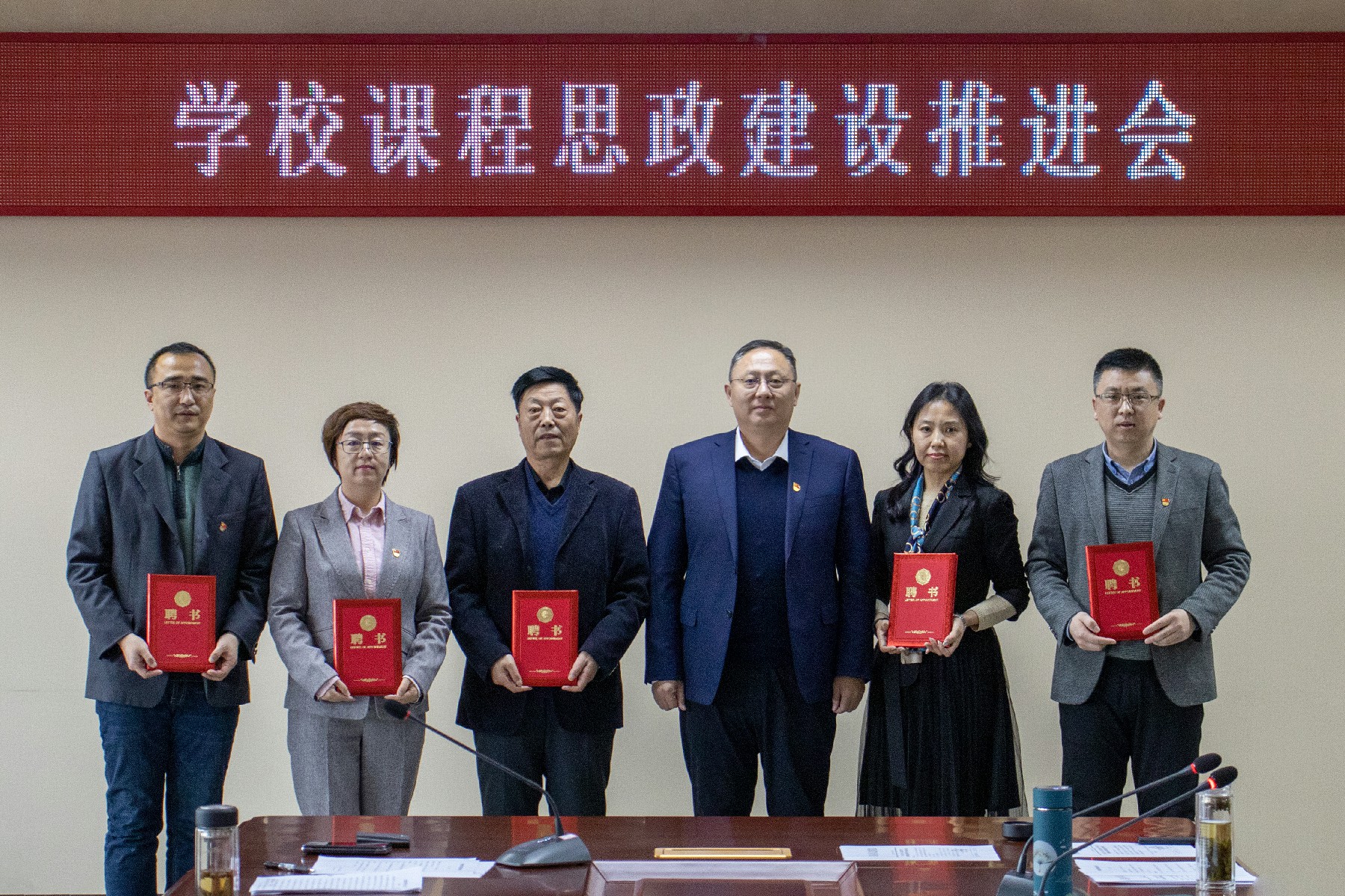 校长潘福林、党委书记王煊为课程思政教学研究中心成员颁发聘书,并合影留念。
