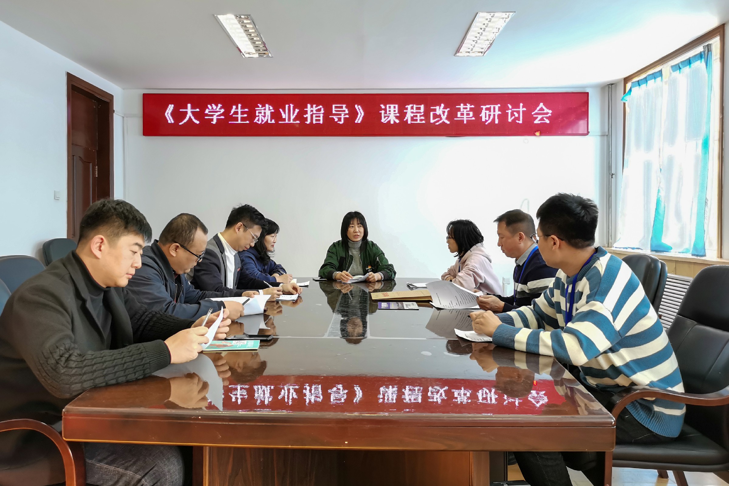为进一步做好《大学生就业指导》课程的教学教研工作,提升教学质量和教学效果,增强教师就业指导能力。12月22日下午,就业创业教研部召开《大学生就业指导》课程改革研讨会。8位承担该门课程教学的教师参加会议。本次研讨会以“就业指导课程教学改革与创新”为主题。