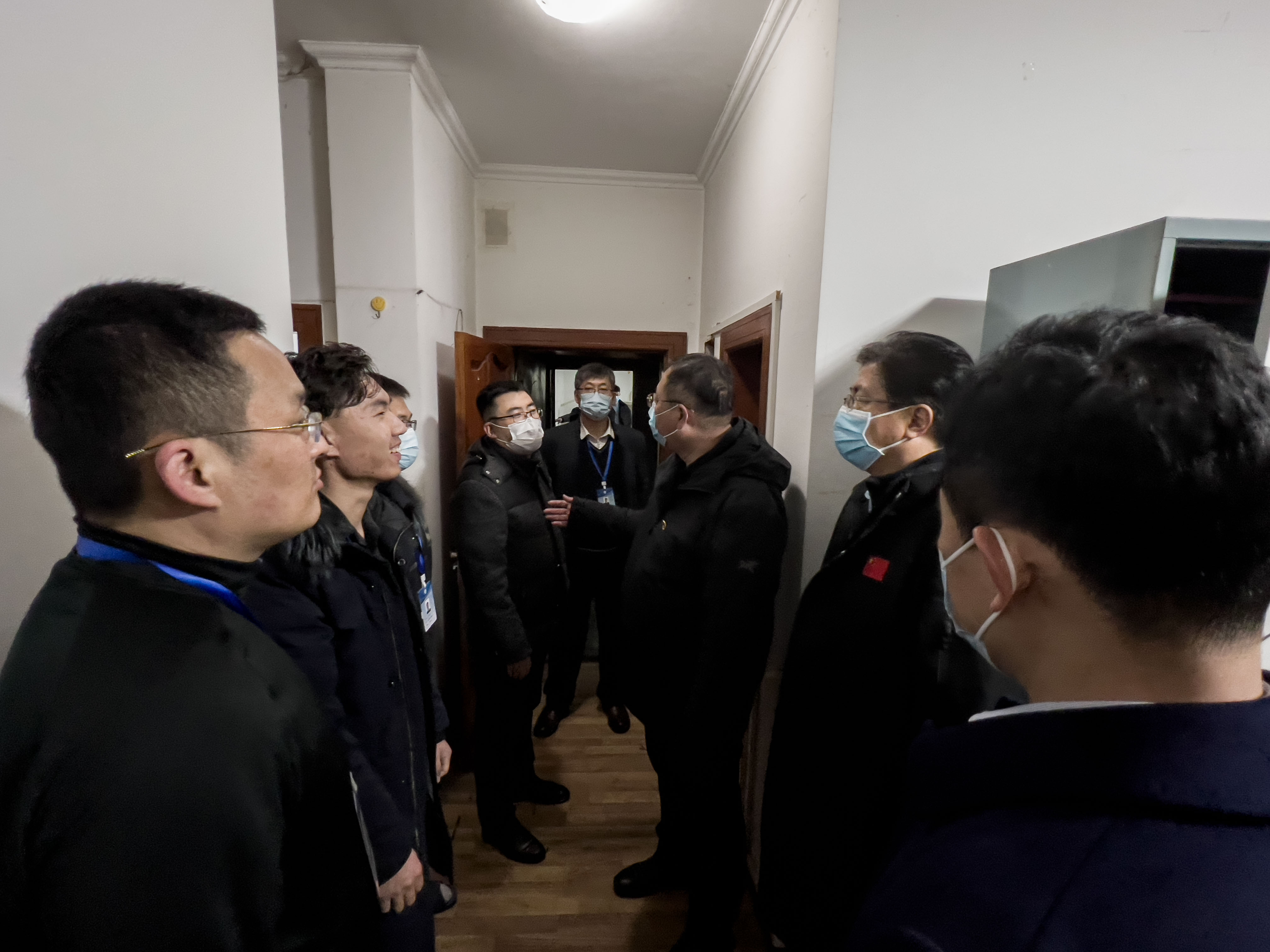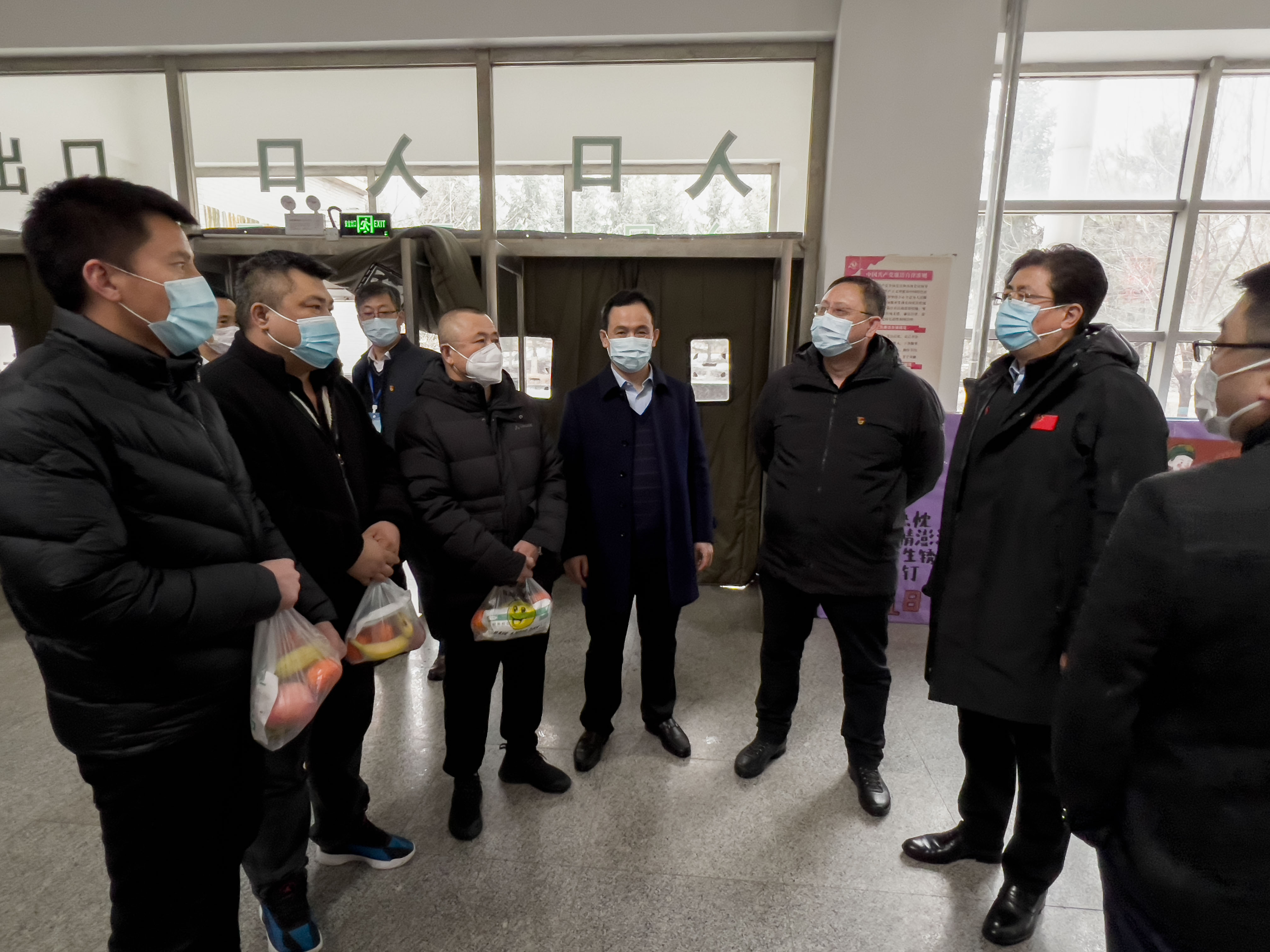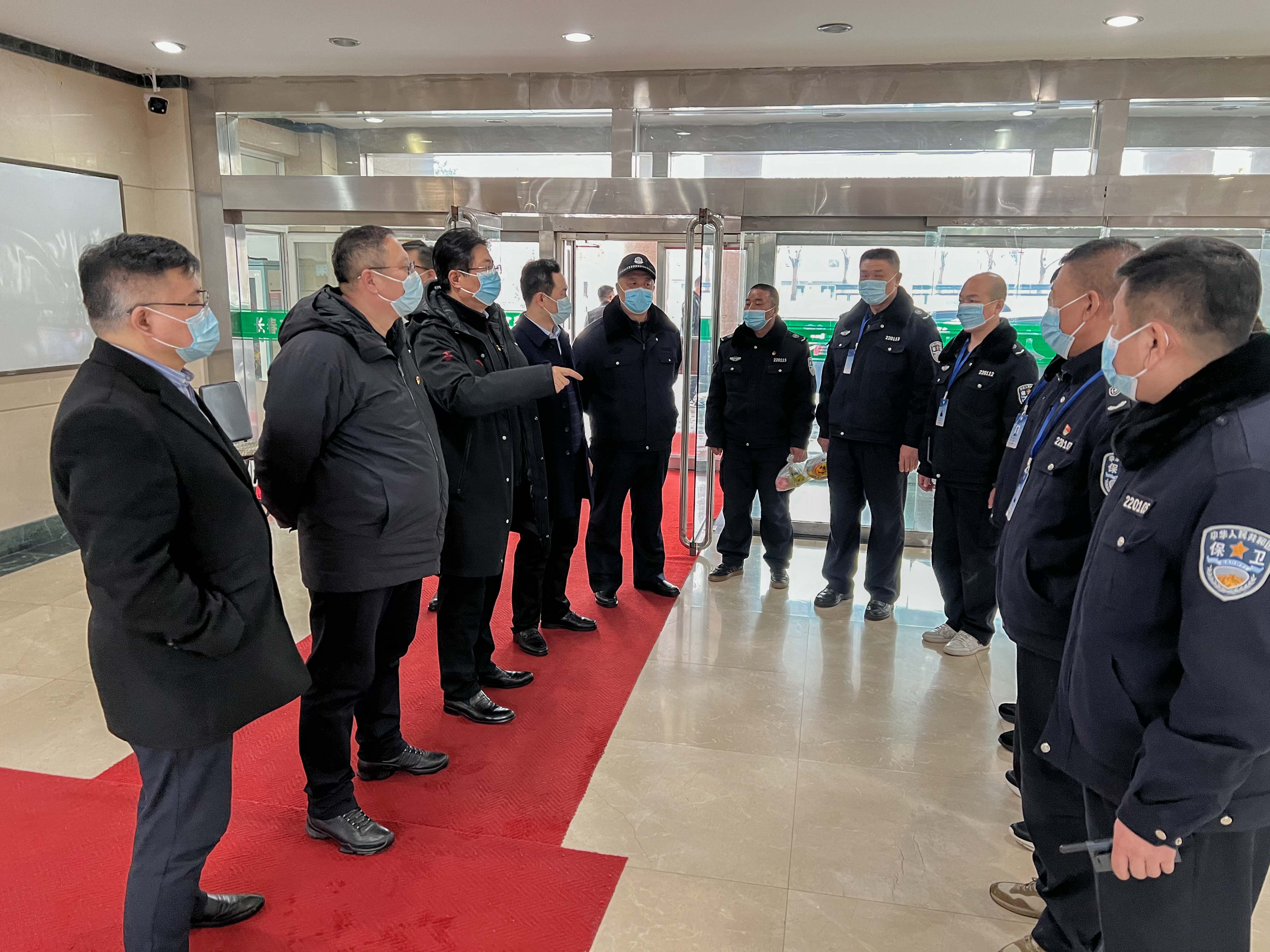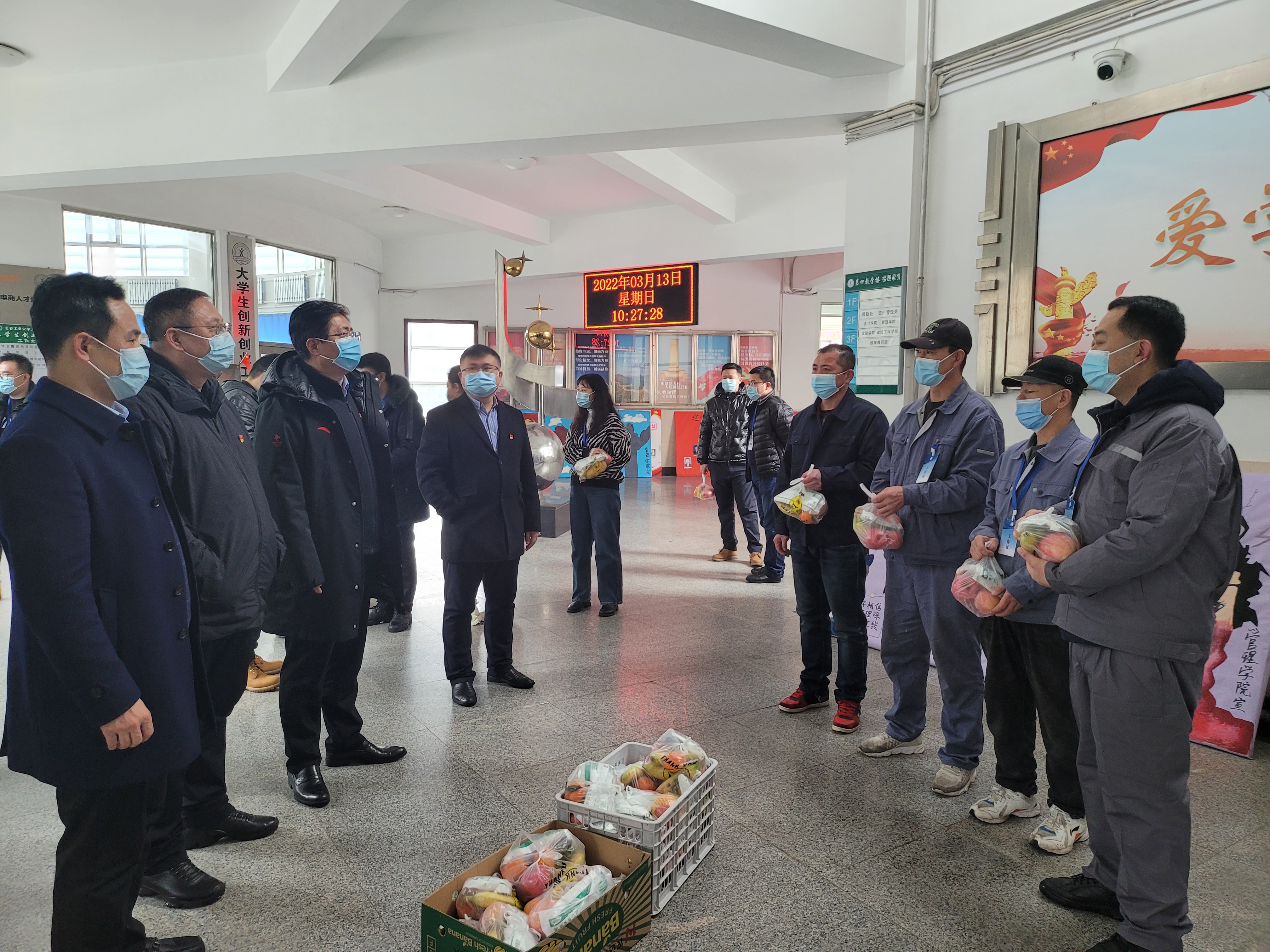 校领导一行先后来到行政办公楼,第一、第二、第三、第四教学楼,南、北校区值岗亭和宿舍,看望慰问正在一线值守的辅导员、行政人员、后勤保障人员和安保人员,并给每人送上慰问信、水果和医用口罩等防护物资。