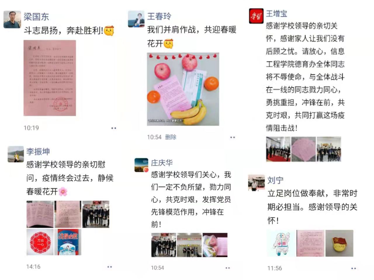 学校疫情防控一线的教职工纷纷表示,感谢校领导的关心与慰问,一定会坚守岗位,坚定信心,扎实做好疫情防控各项工作,与全体师生一道,全力以赴打赢这场疫情防控战。