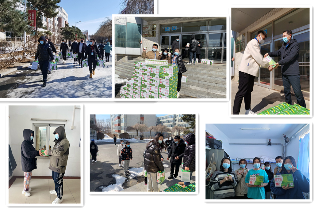 封校以来,学校一直协调各方全力保障在校坚守广大师生的正常学习、工作和生活。在物资调配如此艰难的当下,为减轻同学们的心理压力、焦燥情绪,增强抵抗力,经过积极统筹调配,购置475箱纯牛奶,把爱心奶送至每一位师生手中。