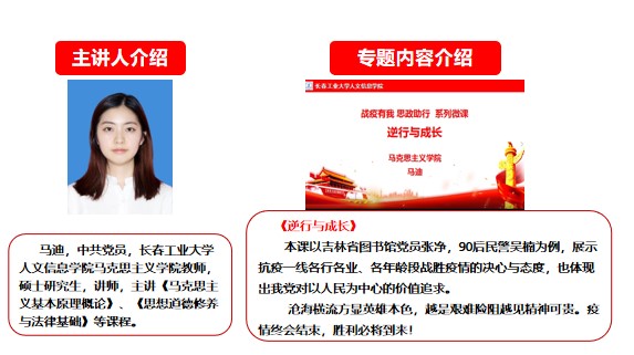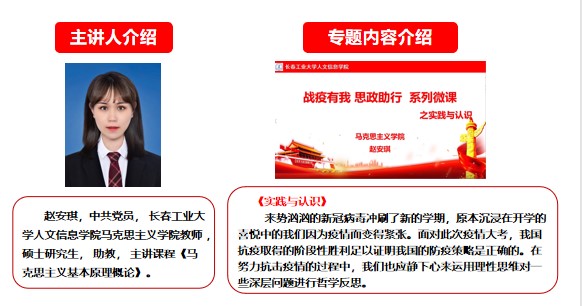 长春工业大学人文信息学院马克思主义学院“战‘疫’有我 思政助行”系列微课第三期开讲啦!