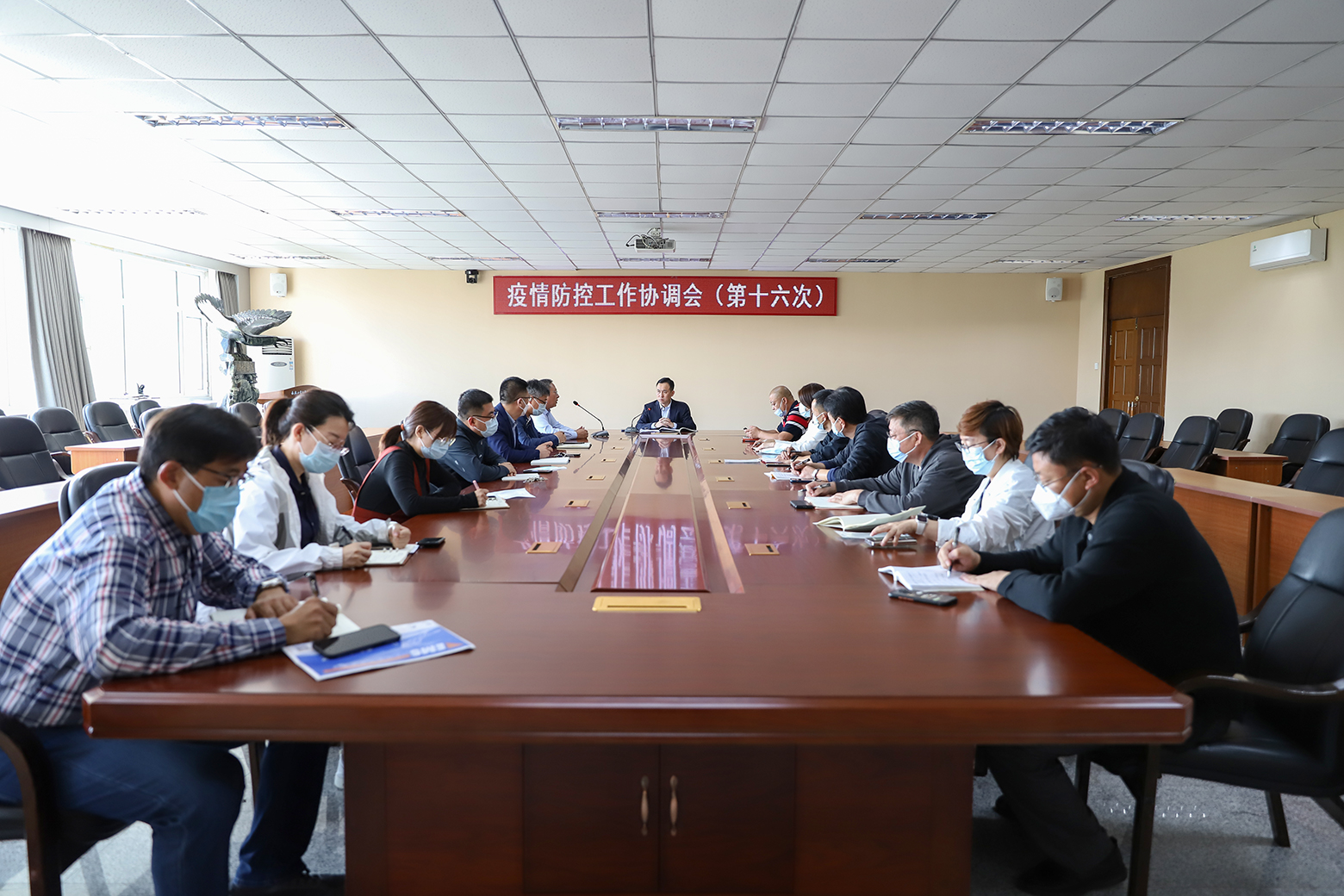 8月30日下午,学校在校部三楼会议室召开第十六次疫情防控工作协调会,传达驻长高校秋季开学疫情防控工作部署会精神。党委书记王煊、副校长李晓科及学校疫情防控工作领导小组成员、相关部门负责同志参加会议。
