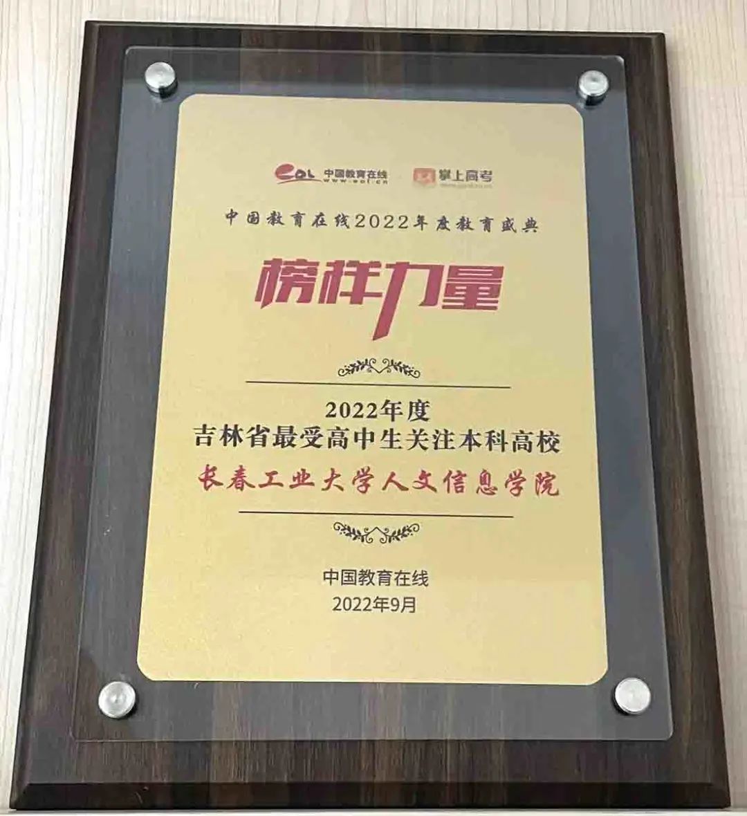 近日,中国教育在线“榜样力量·2022年度教育盛典”评选获奖名单揭晓,长春工业大学人文信息学院荣获“2022年度吉林省最受高中生关注本科高校 ”荣誉称号。