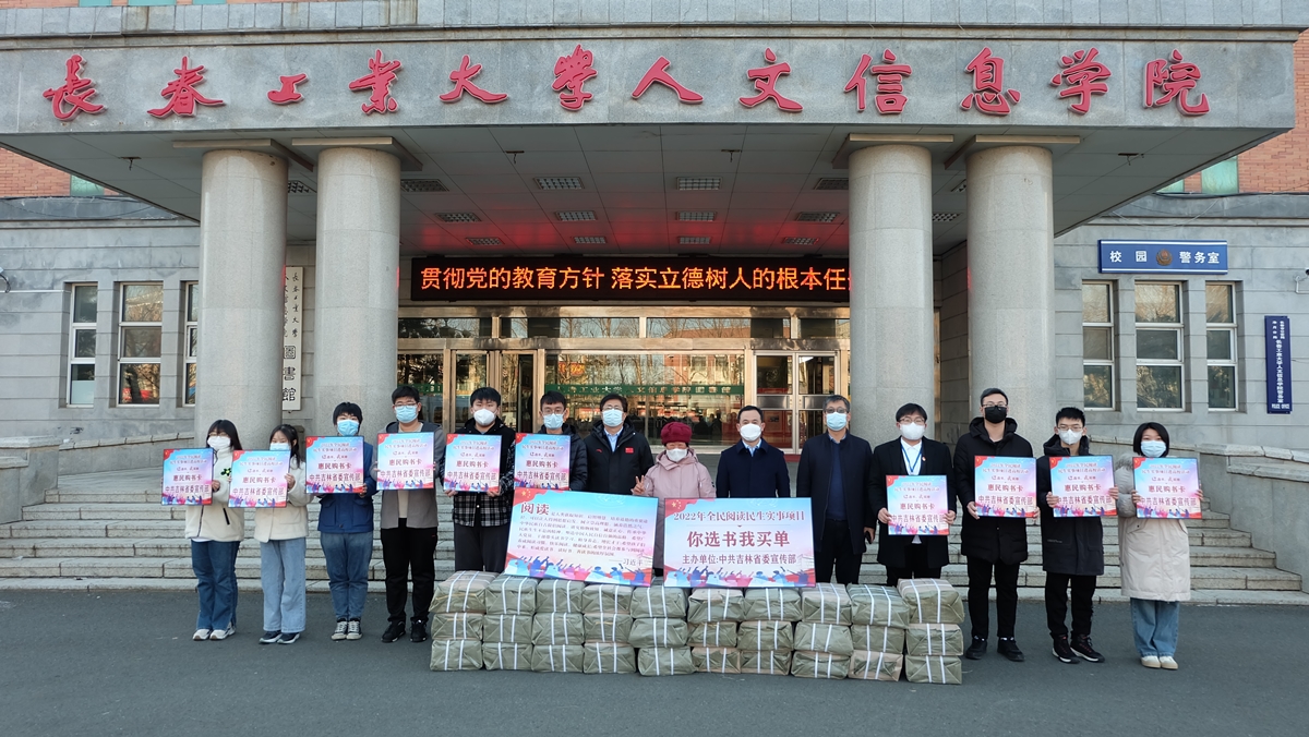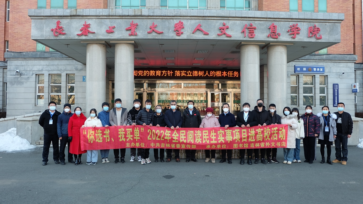 11月22日上午,“你选书、我买单”2022年全民阅读民生实事项目进高校活动在学校图书馆门前举办。校长潘福林,副校长李晓科,图书馆馆长李桂香,吉林省外文书店经理张金山,校办主任张孝强,受助学生代表参加了此次活动。