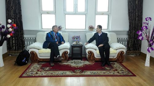双方就两校国际交流合作进行了洽谈。李晓科对刘凤山为中美两所高校国际交流所做的工作表示感谢,并介绍了交流项目在我校的进展情况。他希望在双方的共同努力下,加快两校交流项目的进程,进一步拓展两校国际交流合作的领域。刘凤山表示,将尽最大的努力促进交流项目的开展,并为我校学生赴美提供更多的支持与帮助。