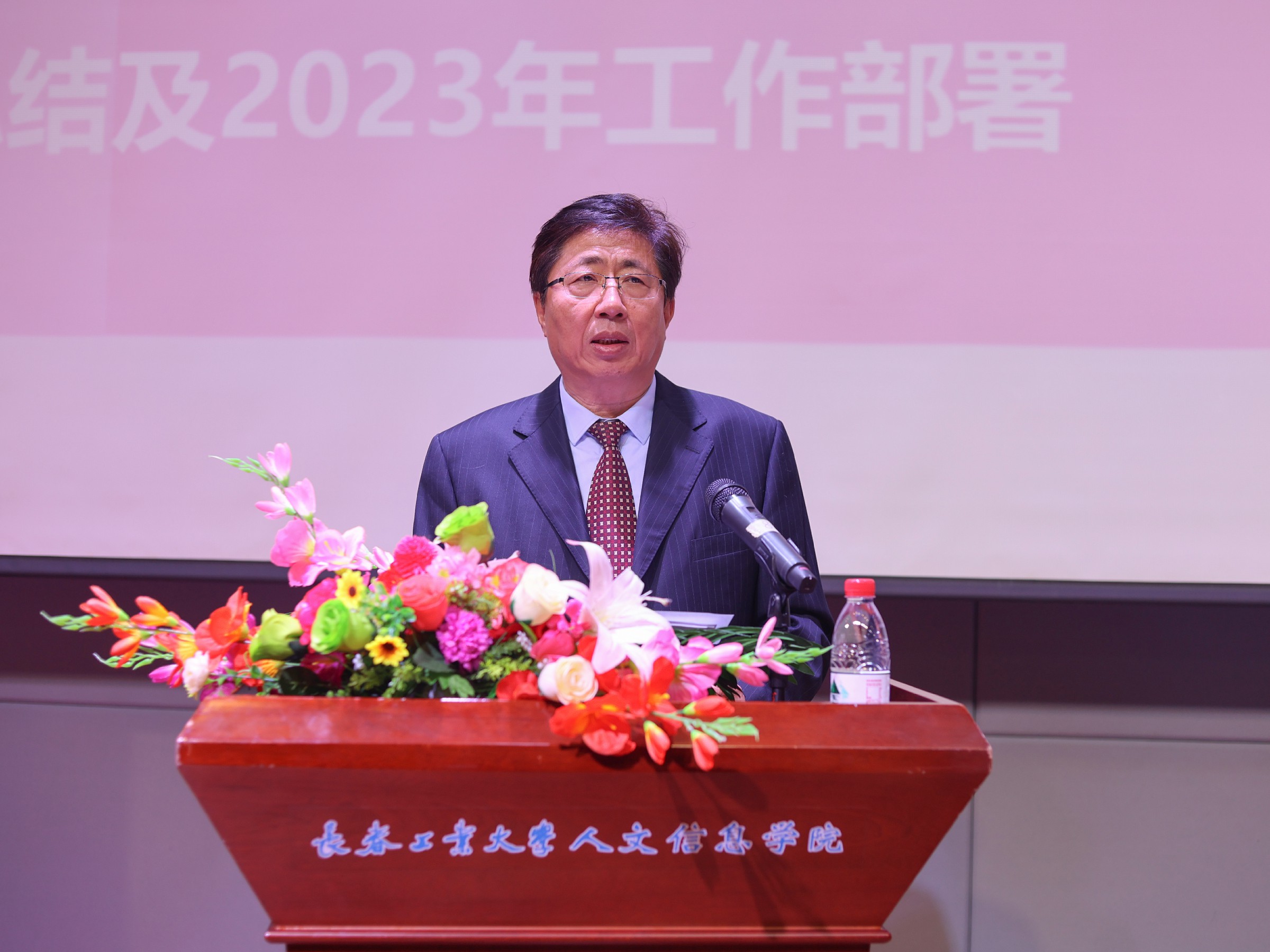 潘福林指出,2023年是全面贯彻落实党的二十大精神的开局之年,是实施“十四五”规划承上启下的关键之年,是学校转设和新校区建设的重要一年。全年学校工作的总体要求是:以习近平新时代中国特色社会主义思想为指导,深入学习贯彻党的二十大精神,认真落实习近平总书记关于教育的重要论述和视察吉林重要讲话重要指示精神,按照全省教育工作会议部署要求,深刻领悟“两个确立”的决定性意义,增强“四个意识”、坚定“四个自信”、做到“两个维护”,坚持稳中求进工作总基调,全面加强和改进党的建设,全面贯彻党的教育方针,落实立德树人根本任务,紧紧围绕应用型办学定位,统筹推进学校各项事业发展,全面提升教育教学质量,强化学生综合素质培养,加快转设工作和新校区建设步伐,确保校园安全稳定,推动各项建设再上新台阶。
