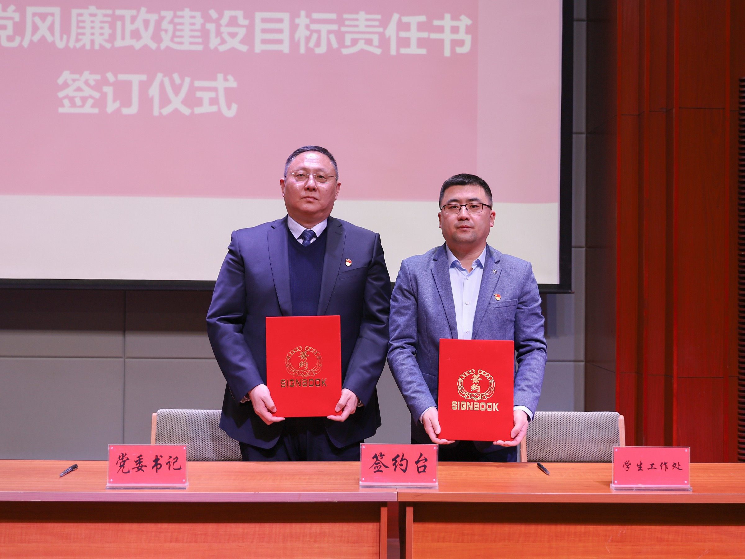仪式现场,学校党委书记王煊分别与学生工作处、外国语学院党总支签订了2023年党风廉政建设责任书。