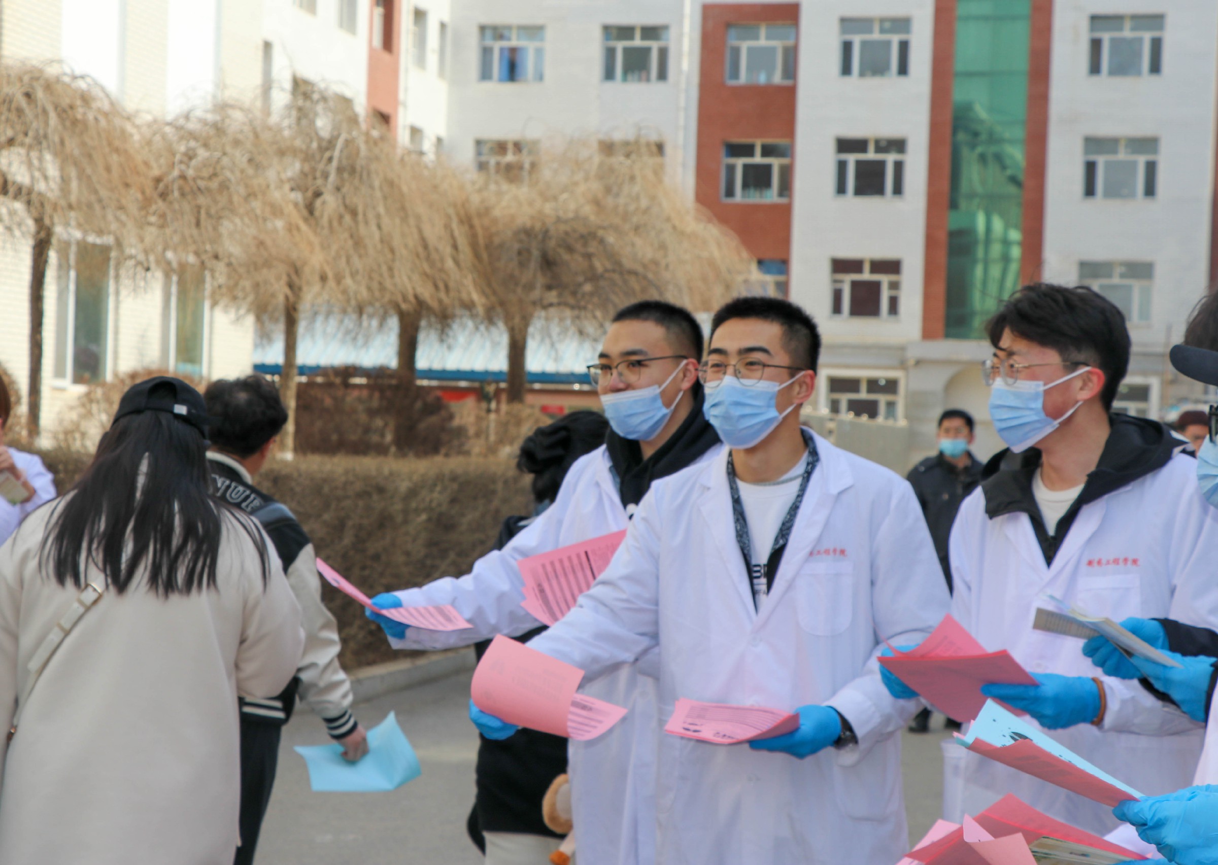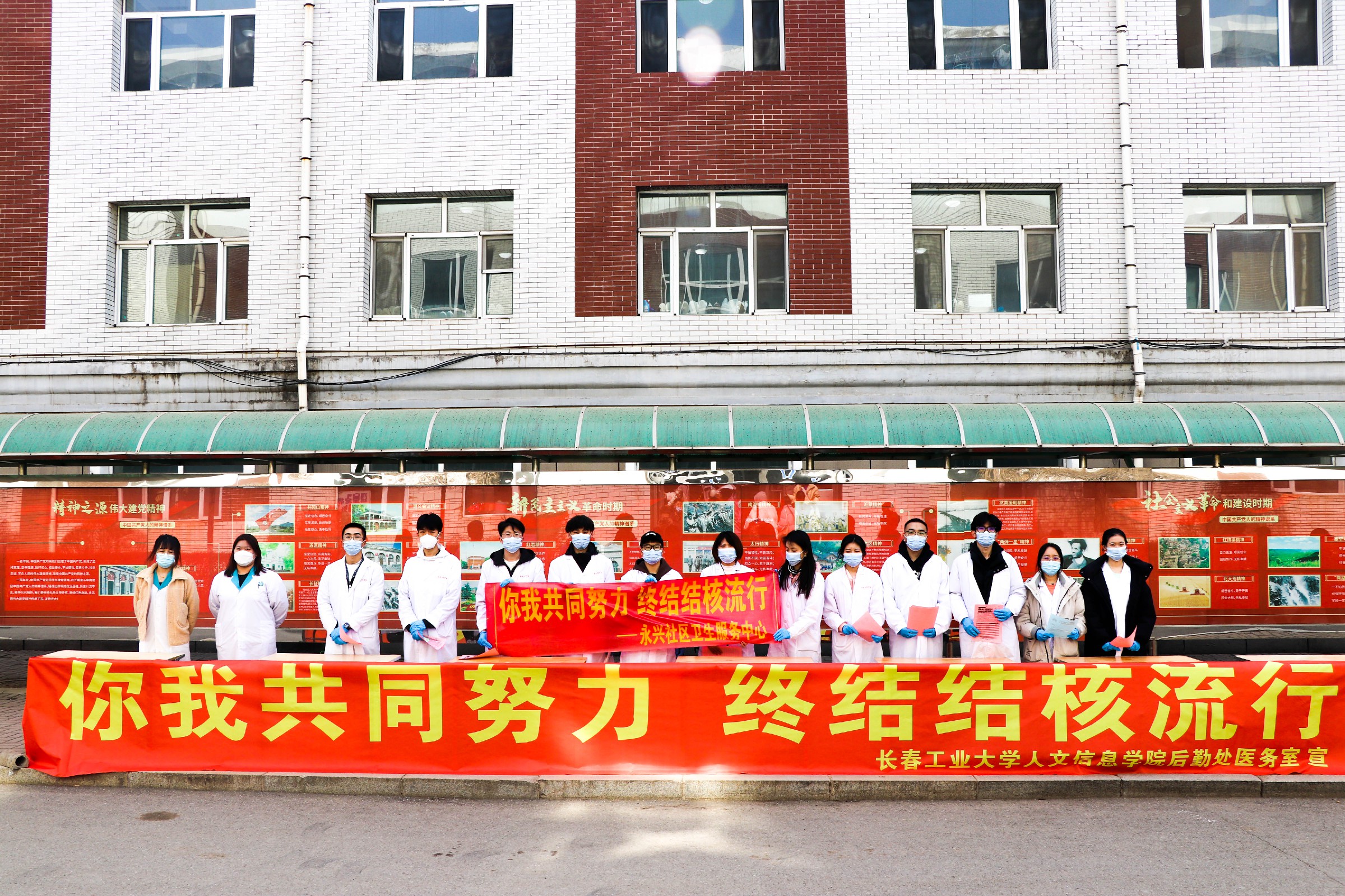 为纪念世界著名的德国科学家科赫氏发现结核菌,世界卫生组织(WHO)和国际防痨、肺病联合会(IUATLD)共同倡议,将3月24日作为“世界防治结核病日”。我校为进一步做好第28个“世界防治结核病日”主题宣传教育活动,宣传普及结核病防治知识,动员全校师生关心、支持和参与结核病防治工作,降低结核病发病率,后勤处联合长春市永兴街道卫生医疗服务中心、党委宣传部、校团委、制药工程学院,于2023年3月24日中午在食堂门前开展了以“你我共同努力 终结结核流行”为主题的宣传教育活动。