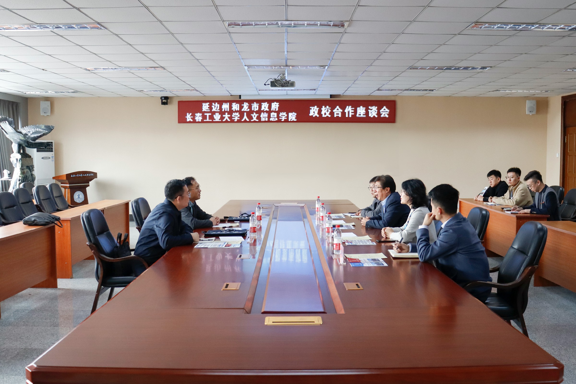 4月4日,延边州和龙市委常委、和龙市人民政府副市长付明,和龙市人民政府副市长杜剑波来我校考察座谈。校长潘福林,校长助理王爽,商学院党总支书记闫鹏,自动化学院党总支书记陈思阳,招生就业处相关人员参加本次座谈会。