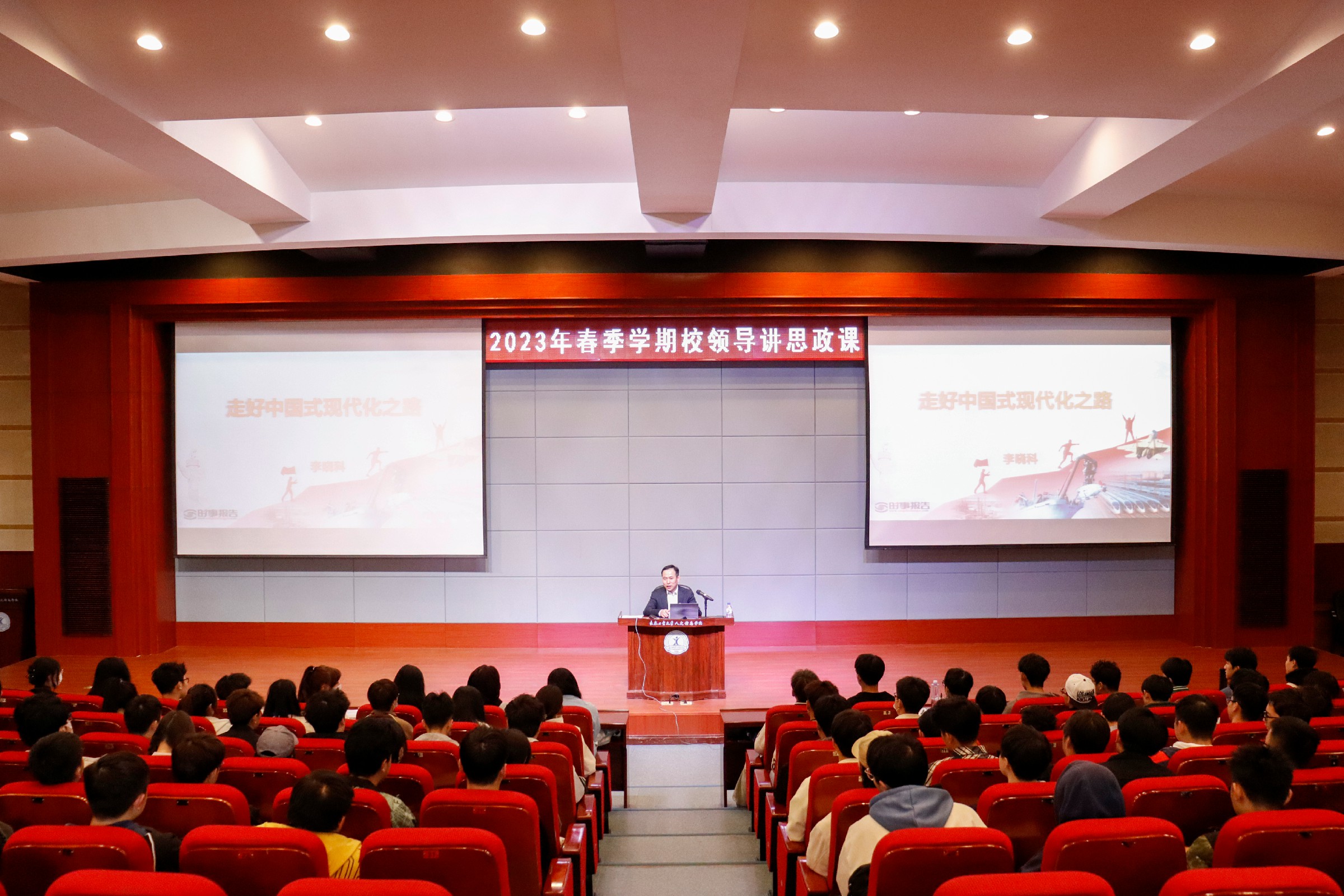 4月19日上午,副校长李晓科教授以《走好中国式现代化之路》为题,为信息工程学院220311、21、51班学生讲授了一堂内容丰富、专业性强、精彩生动的“形势与政策”课。