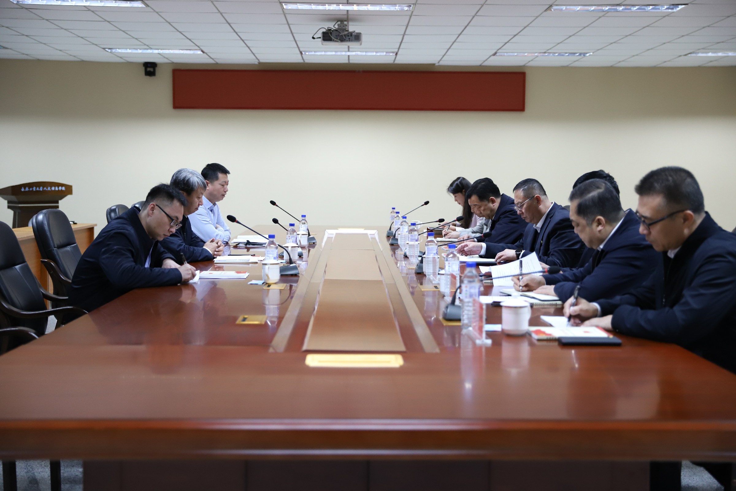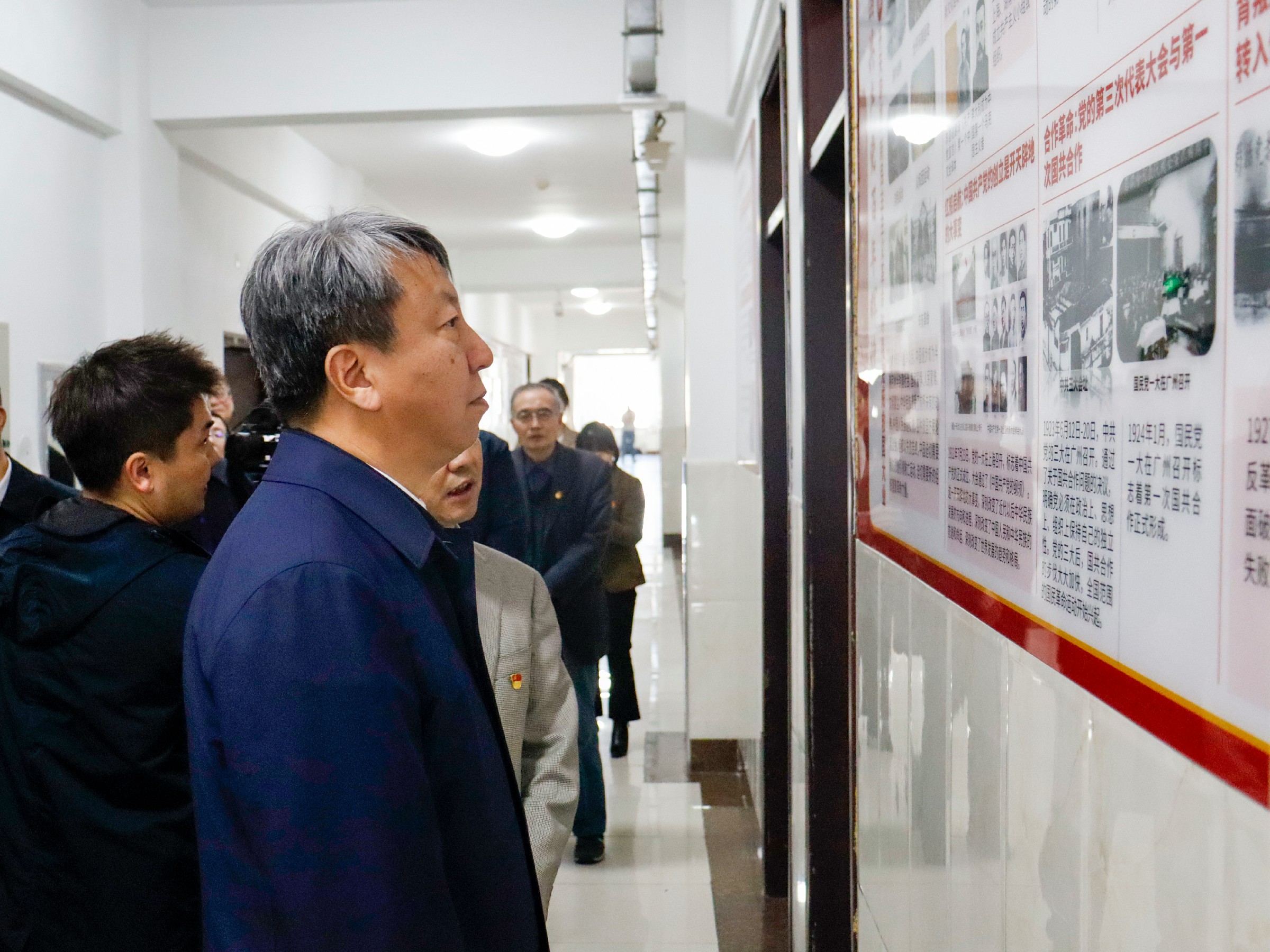 陈希哲一行深入我校马克思主义学院,实地调研了习近平新时代中国特色社会主义思想研究中心和红色教育长廊的建设情况。调研结束后,召开了部分民办高校党委书记调研座谈会。