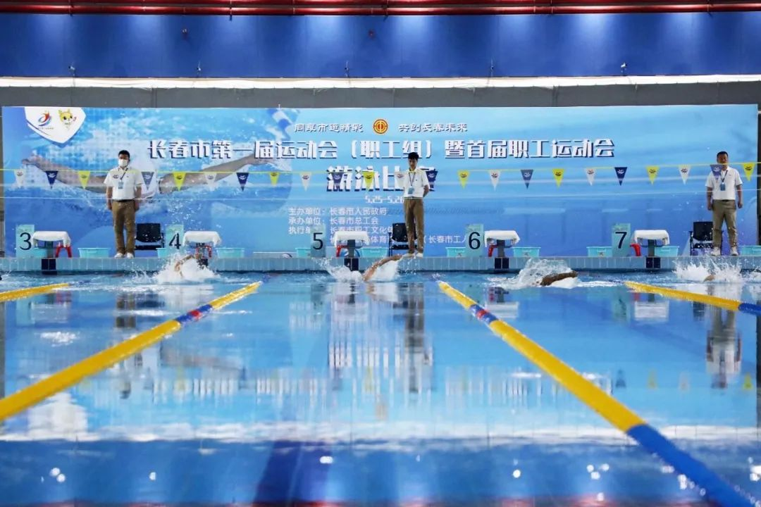 5月25日上午8点30分,由长春市人民政府主办、长春市总工会承办的长春市第一届运动会(职工组)暨首届职工运动会游泳比赛在工人体育馆正式开赛,作为本次运动会第三个竞赛项目,于25日-26日举行,共有81家参赛单位,308名运动员参加比赛。
