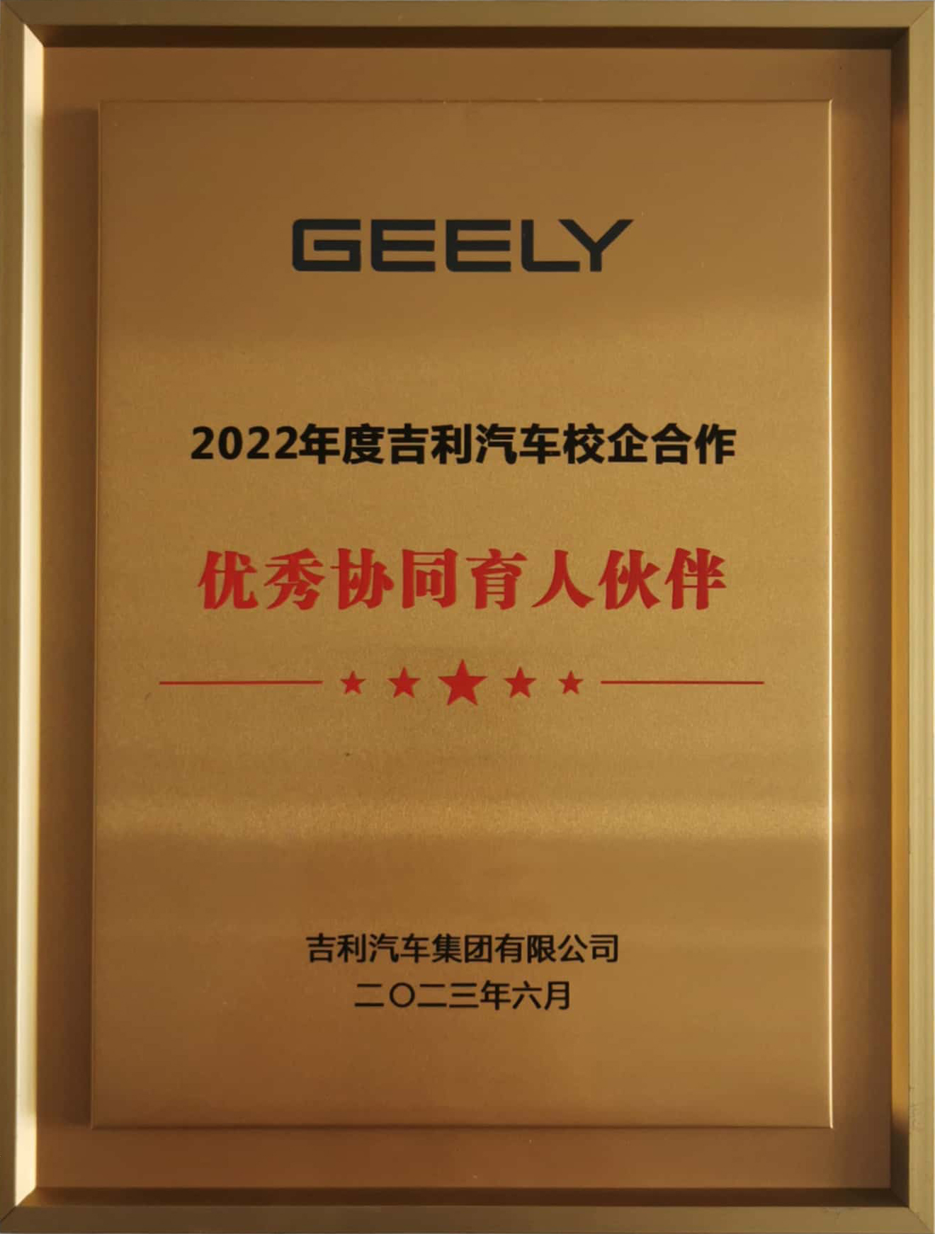 6月6日,浙江吉利汽车集团在湖北武汉举办了机械行业吉利汽车产教协同人才培养联盟年度峰会,政府、行业、企业、学校等多方代表参加了此次盛会,共话产教融合、协同育人,推动产学研用协同发展,助力汽车制造业转型升级和机械行业高质量发展,我校臧玉萍副校长、汽车工程学院刘锐院长参加了此次峰会。会上我校被浙江吉利汽车集团授予“2022年度吉利汽车校企合作优秀协同育人伙伴”。
